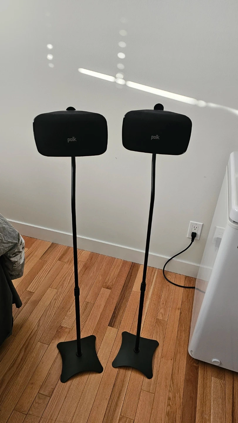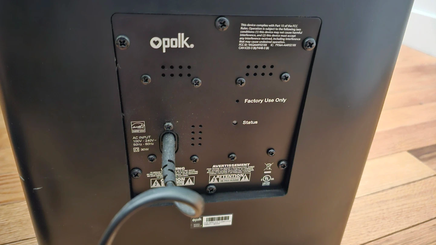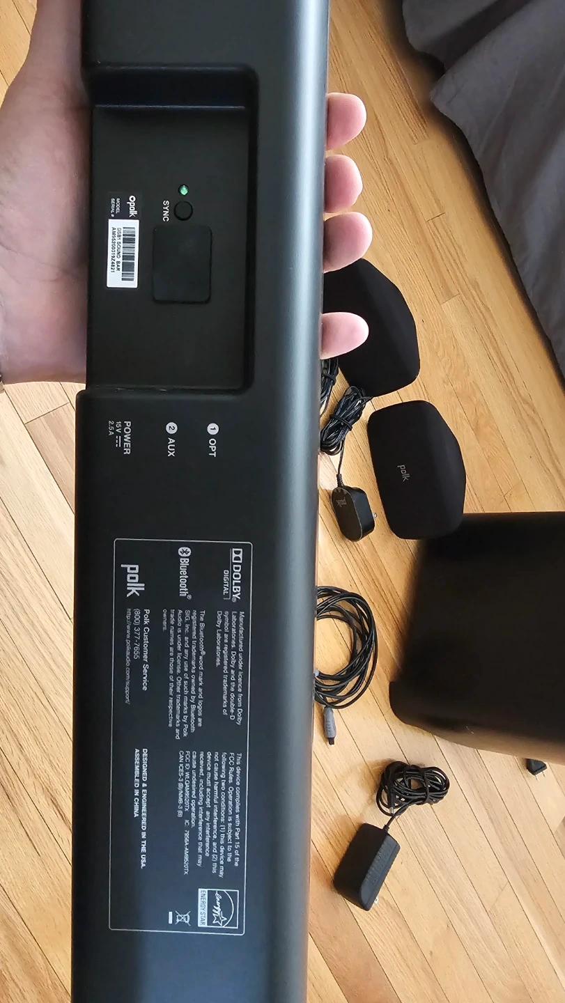 Polk soundbar with wireless subwoofer and wireless rear speakers. Comes with all cables and rear speaker stands for setup.