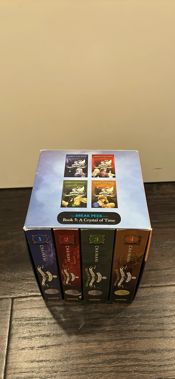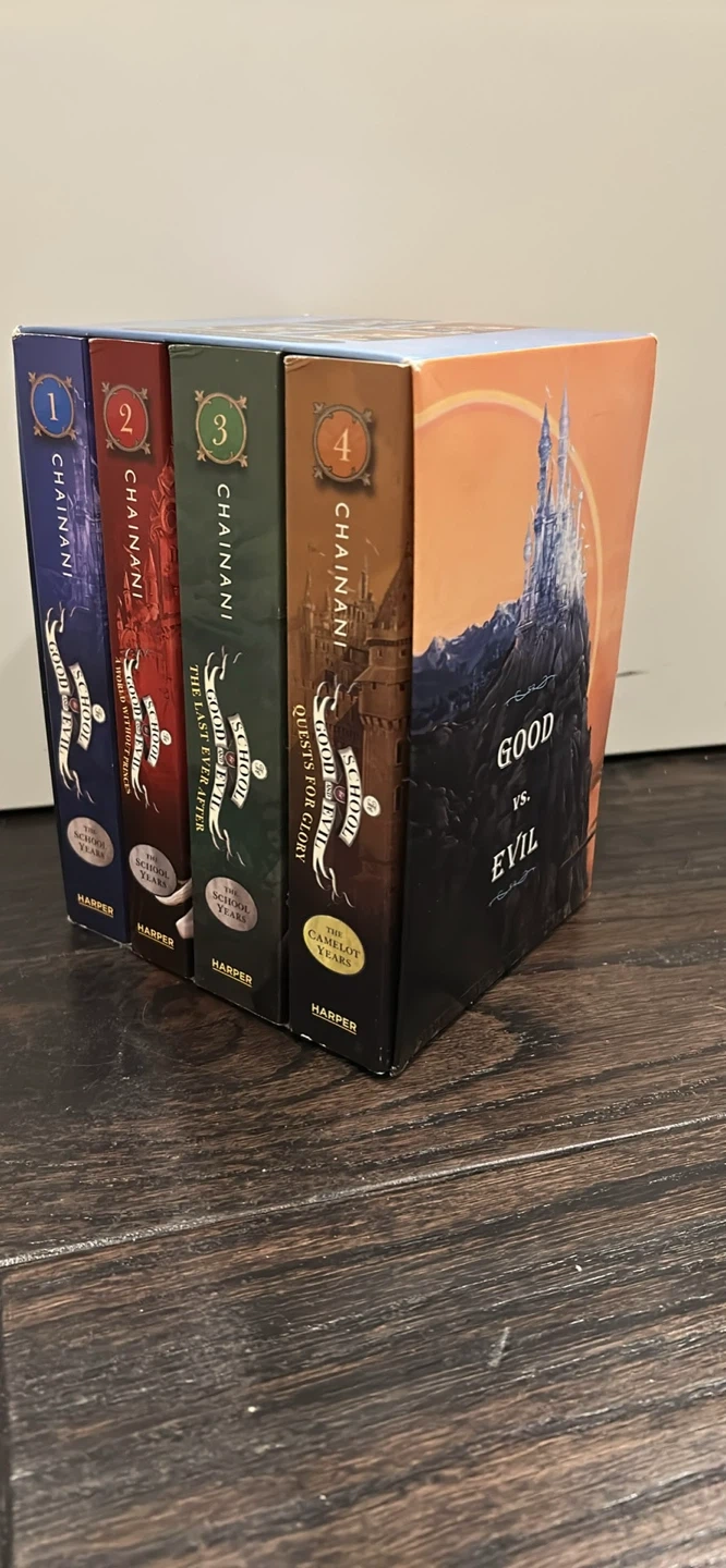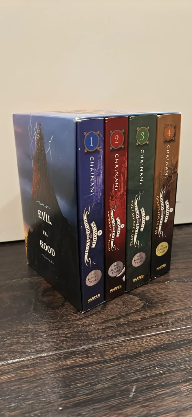 This box set includes books 1 through 4 of The School for Good and Evil series by Soman Chainani. All books are published by Harper. They're great for young fantasy readers!