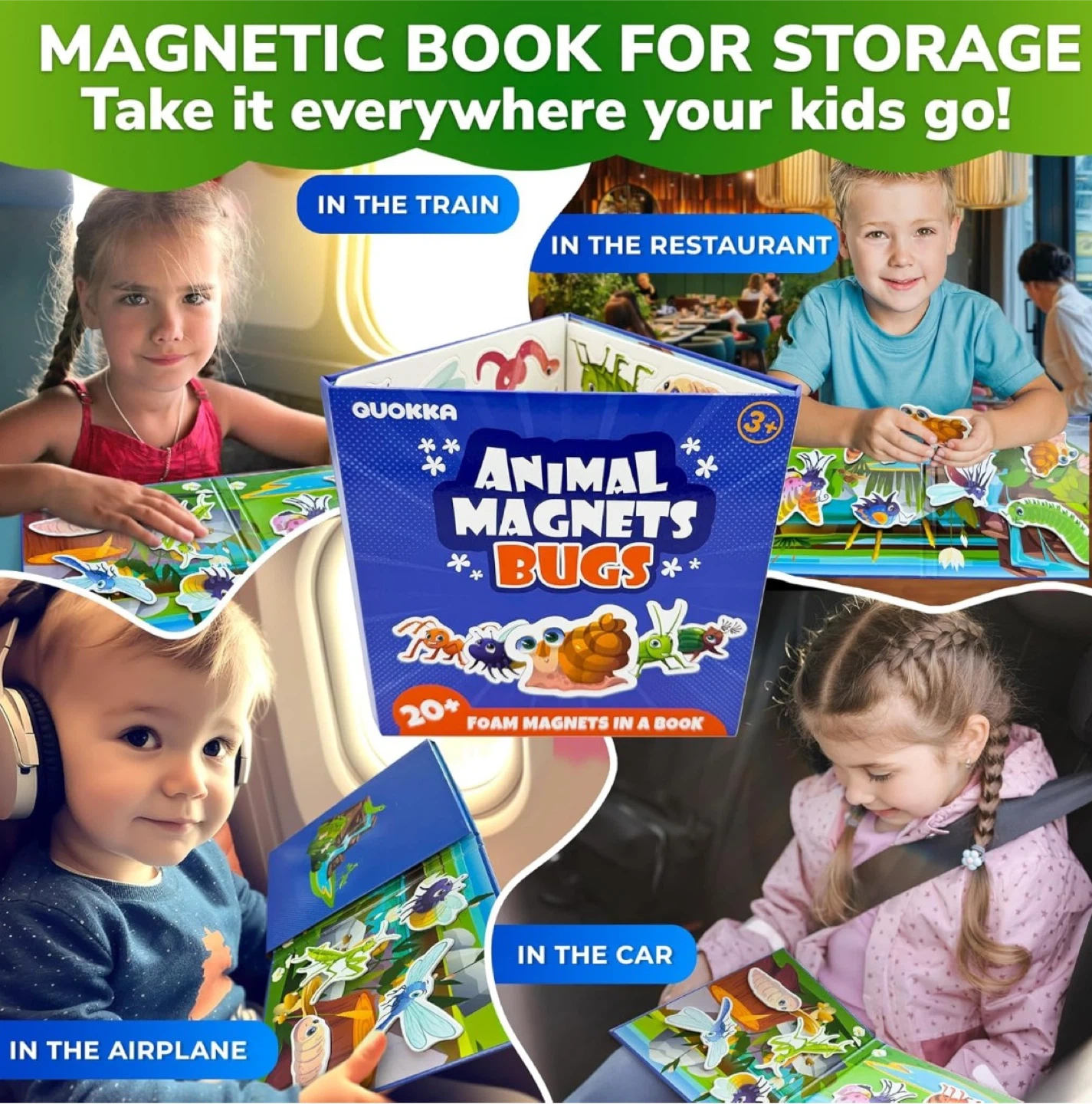 🧲 Quokka Animal Magnets (Bugs) – 20+ foam magnets in a magnetic book