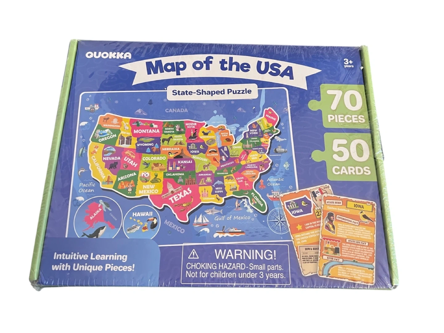 🧩 Quokka Map of the USA state-shaped puzzle (70 pieces + 50 learning cards)
