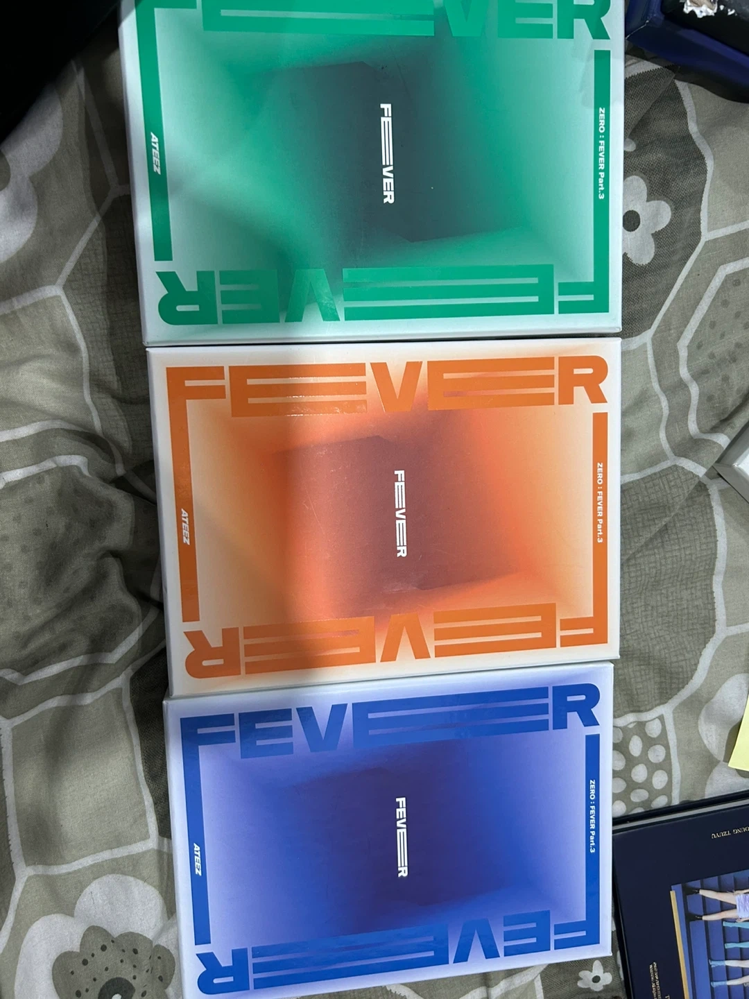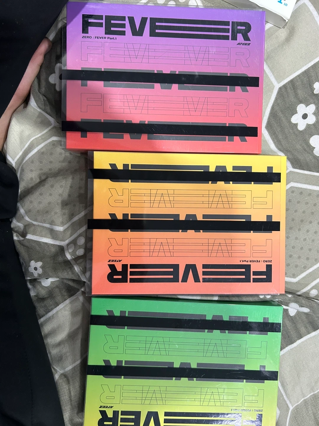 This is a set of ATEEZ ZERO : FEVER album series CDs. Includes Epilogue and multiple parts from the FEVER series. Various colors and designs are present.