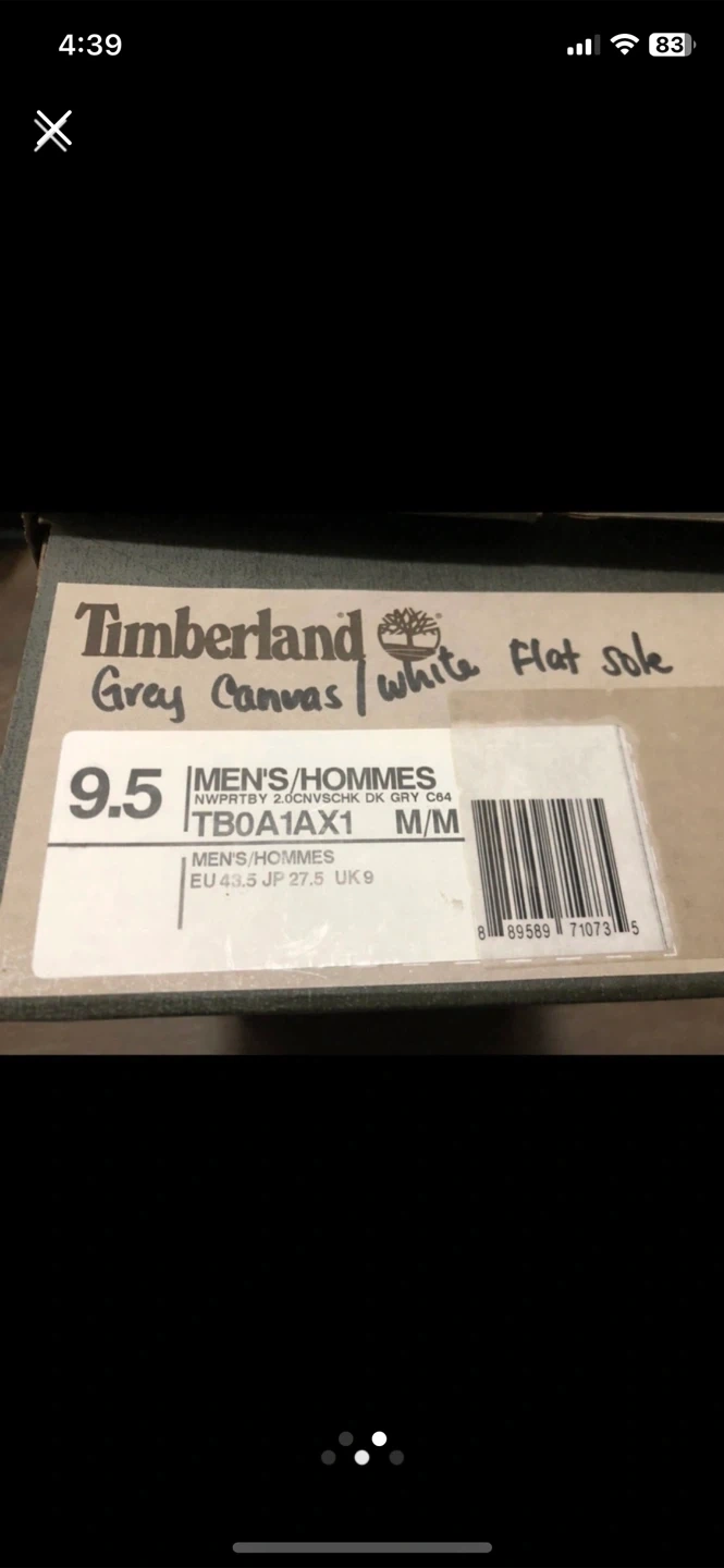 Men's Timberland chukka boots in grey canvas. White laces and a flat sole. Size 9.5.wore a few times like new paid over $80 sell for $40 firm thanks.