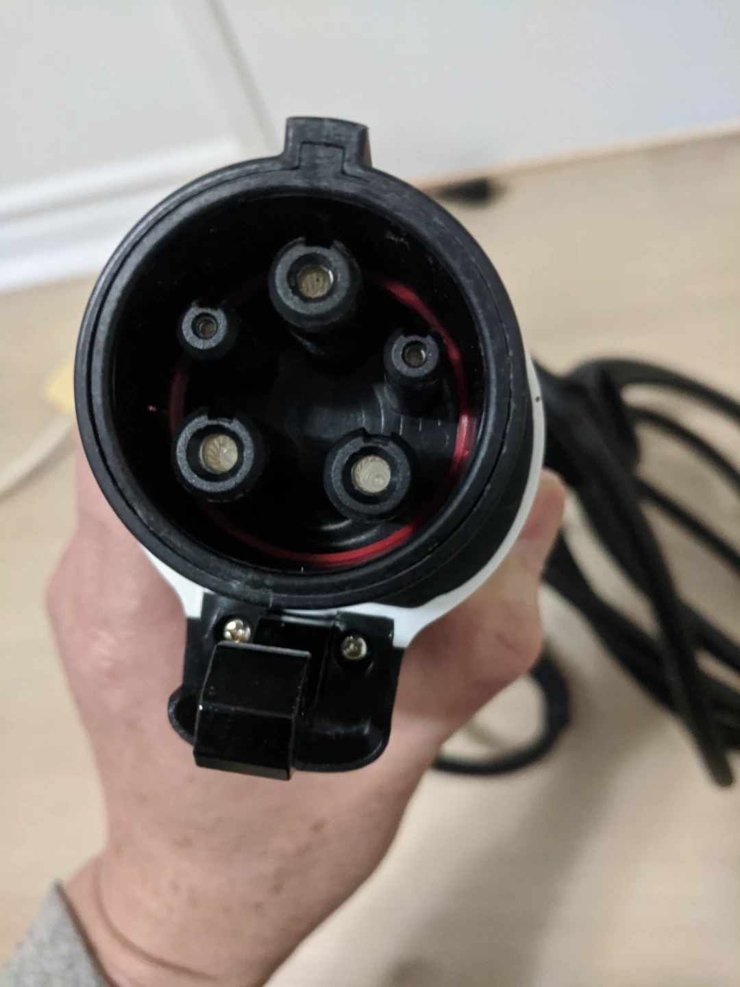 Portable EV charging box for electric vehicles. Features include charging status indicators and fault alerts. Specifications: 90-264 V AC, Operating Temperature: -25 C to +55 C, IP Rating: IP67, Rated Current: 8A, 10A, 16A, 32A.