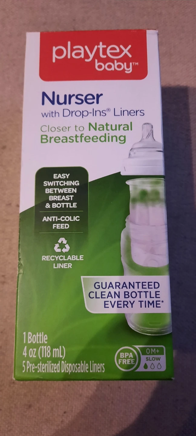 This Playtex Baby Nurser bottle comes with Drop-Ins liners for a guaranteed clean bottle every time. It's designed for easy switching between breast and bottle feeding, and features an anti-colic feed system. Includes 1 bottle and 5 pre-sterilized disposable liners.
