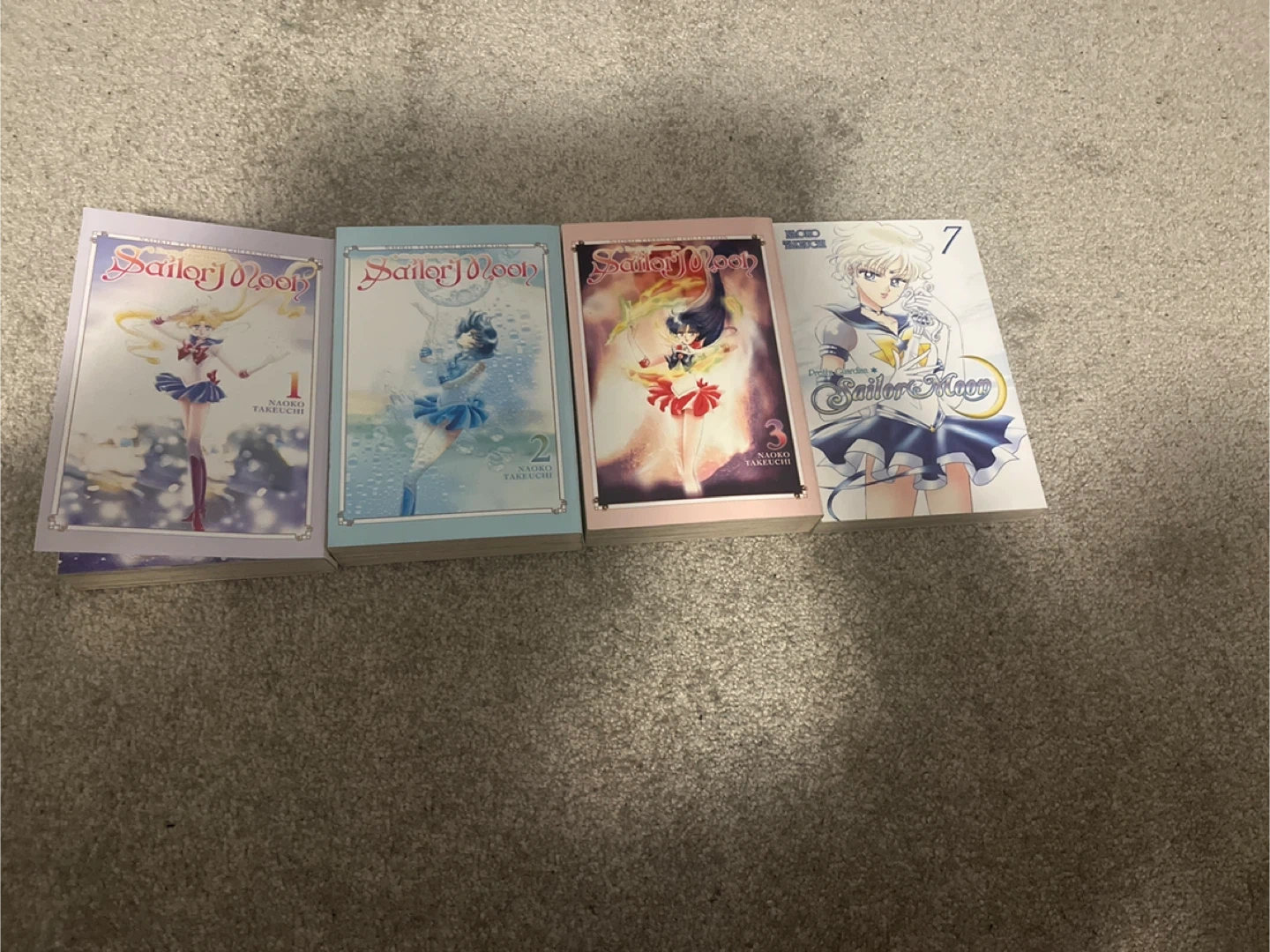 A set of Sailor Moon manga volumes, including numbers 1, 2, 3, and 7. These books are part of the Naoko Takeuchi Collection. They're a classic addition to any manga library. Fans of magical girl anime and manga would enjoy this series.l pet and smoke free home 🏡 14$ each 45$ for all