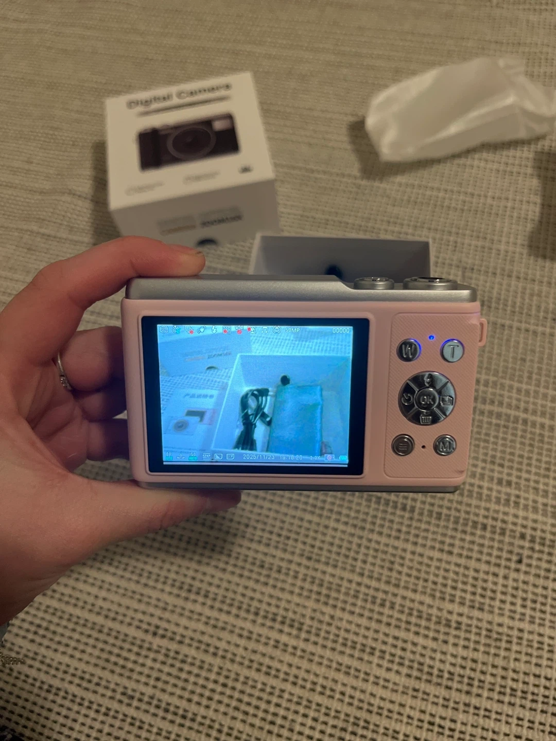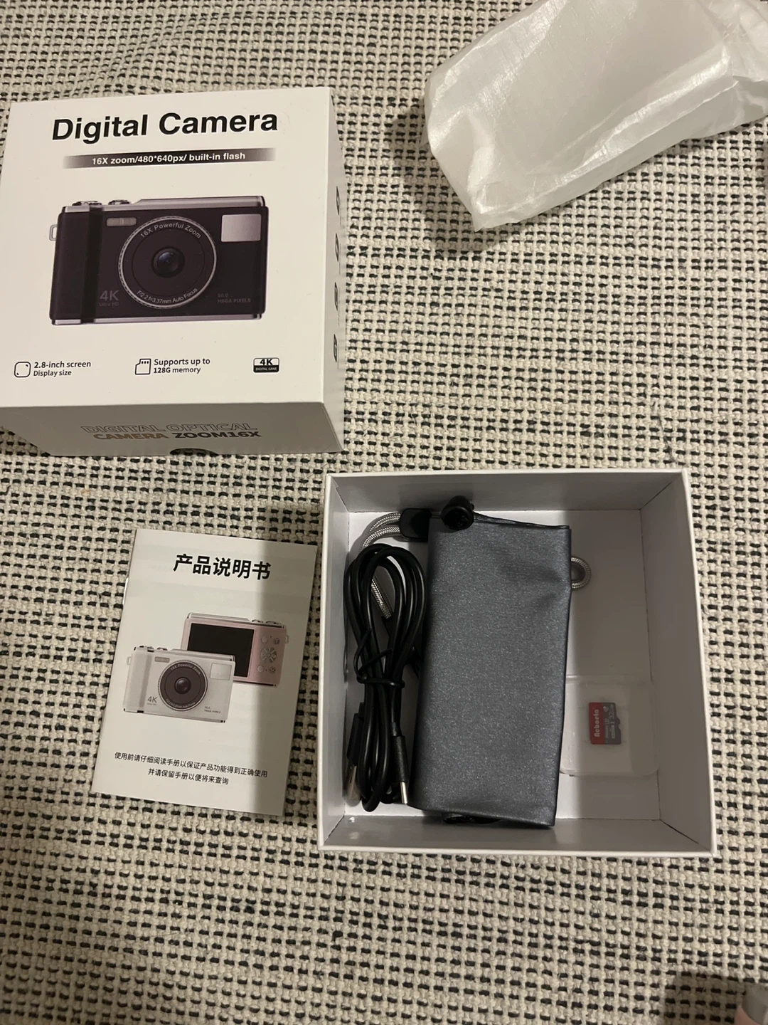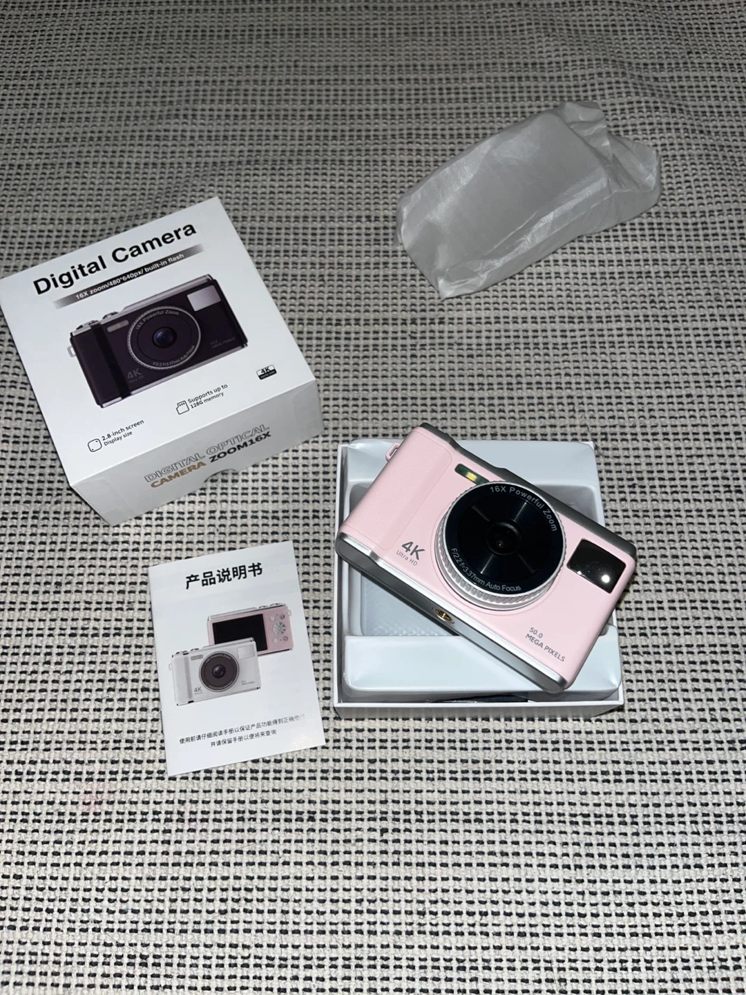 A 16X optical zoom digital camera with a 2.8-inch display. It supports up to 128GB memory. Includes USB cable, protective pouch, and user manual. This camera is a nice pink colour! Comes with a silicone case that’s also pink!