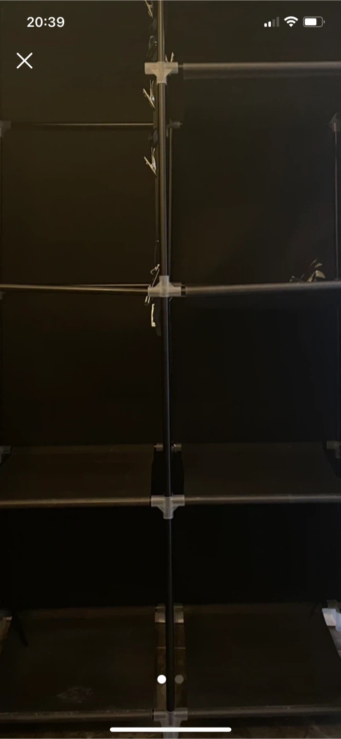 This portable wardrobe is a great way to keep your clothes organized. It features a sturdy metal frame and durable fabric shelves. It's easy to assemble and move around your home. Perfect for small spaces or when you need extra storage!