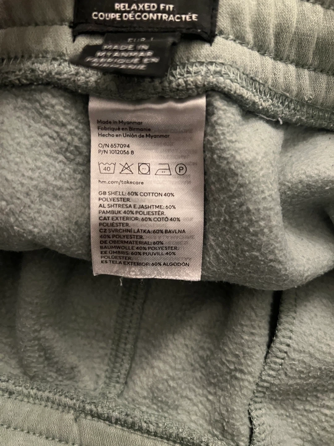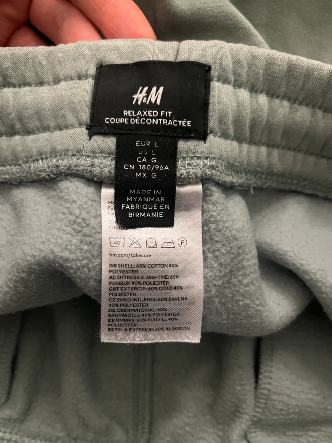 These H&M sweatpants are a relaxed fit and a size large. They're made with a blend of 60% cotton and 40% polyester for comfort and durability. Perfect for casual wear or lounging around the house!