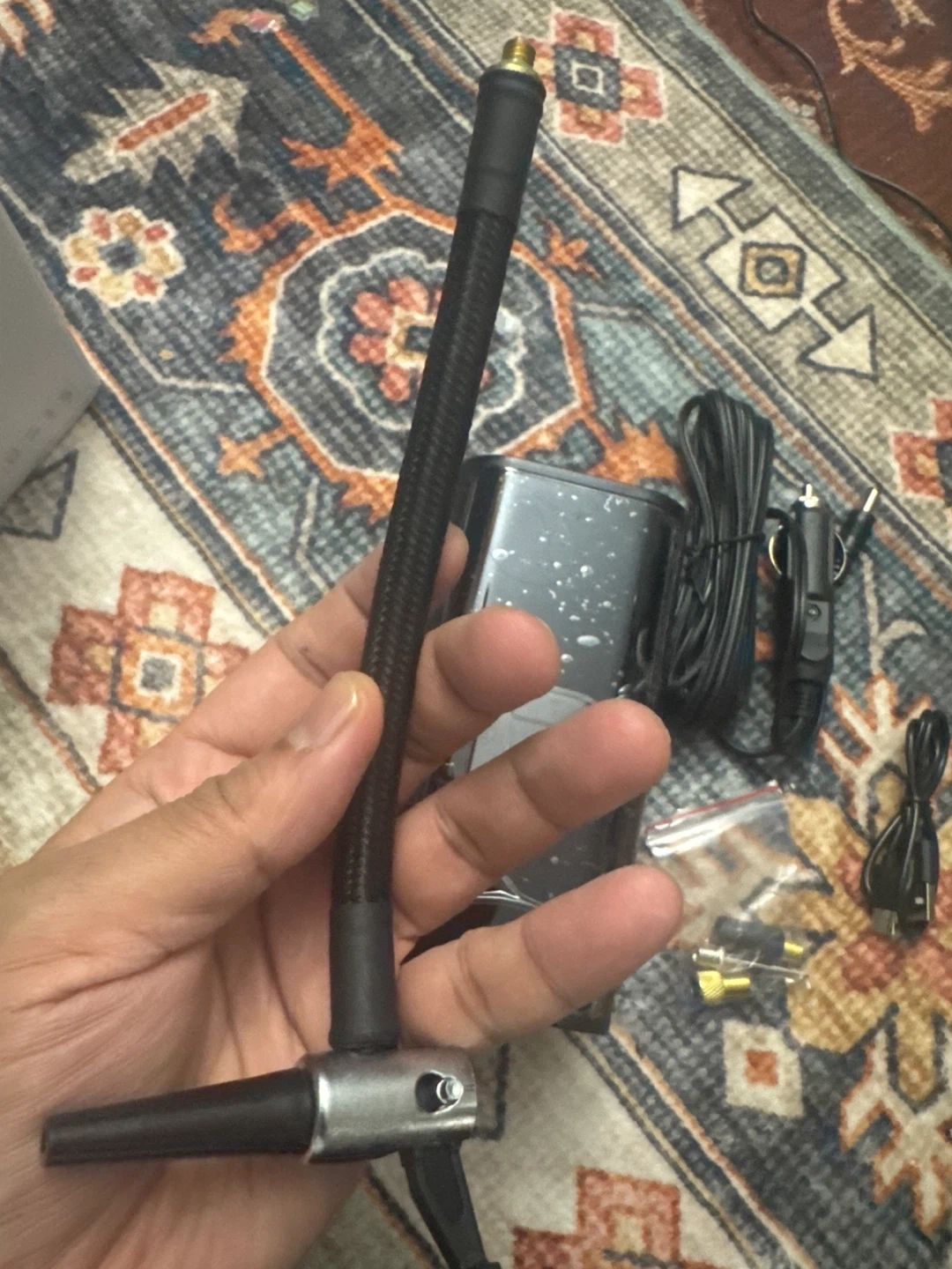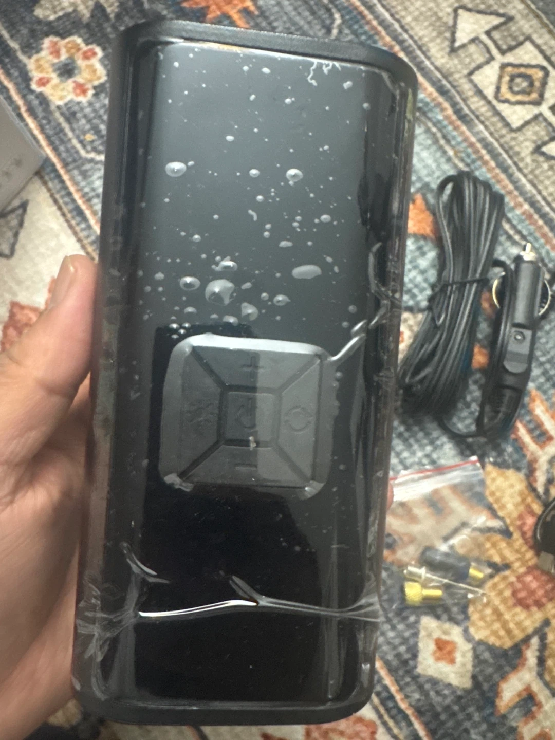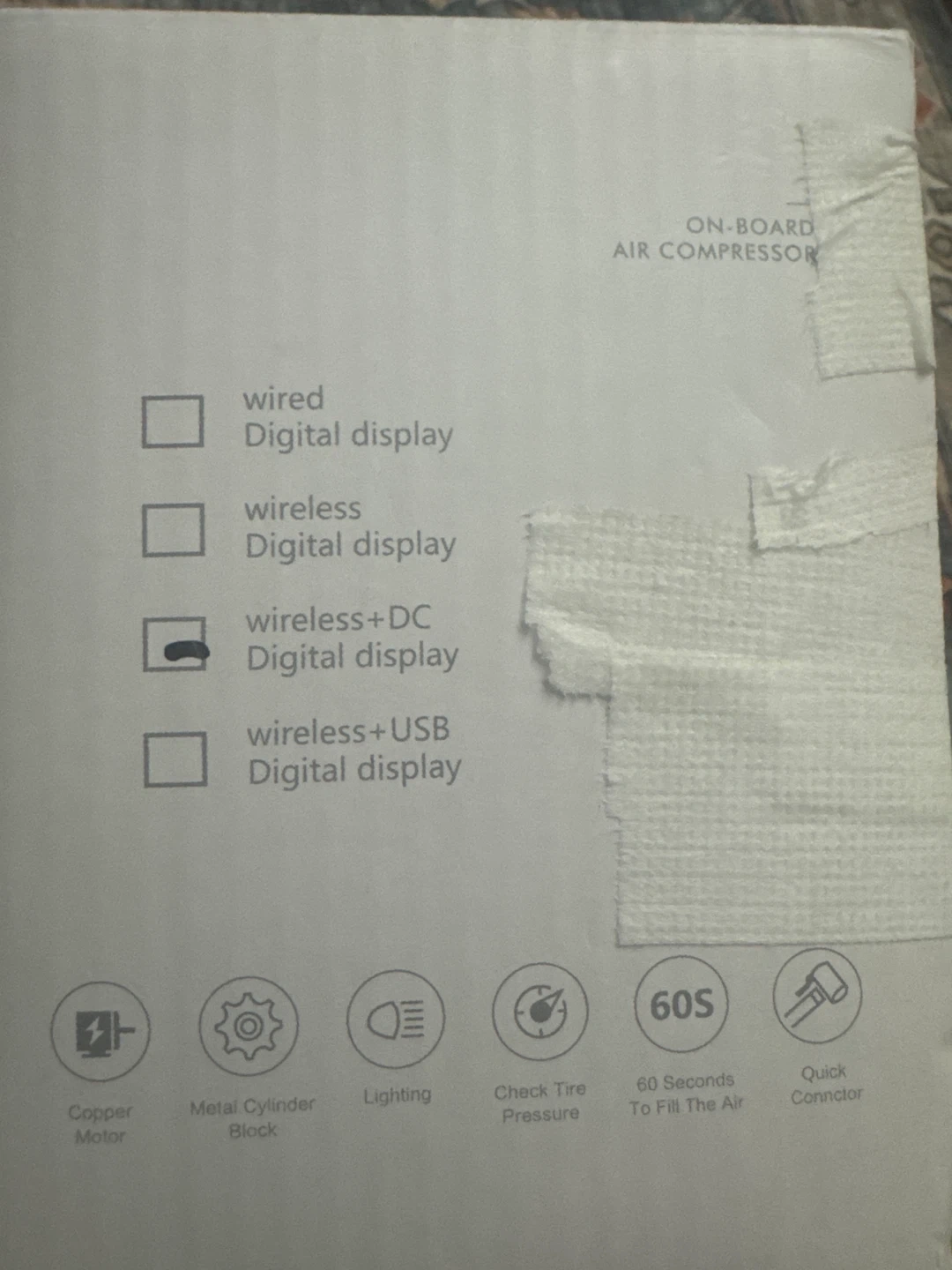 This multifunctional air compressor has a digital display and comes with various nozzles. It operates on 12V DC power with a maximum pressure of 150psi and a flow rate of 30L/min. The cord length is 3.0m.