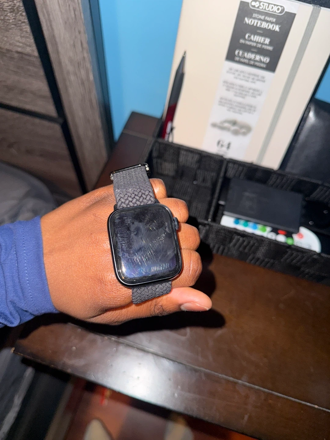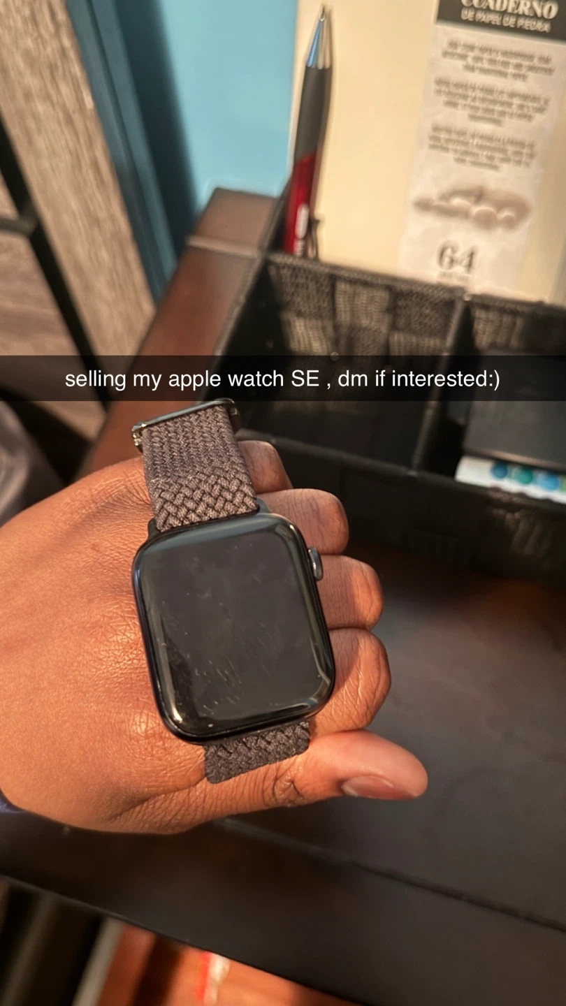 Selling an Apple Watch SE with a grey woven band. It's a smart wearable device for staying connected.