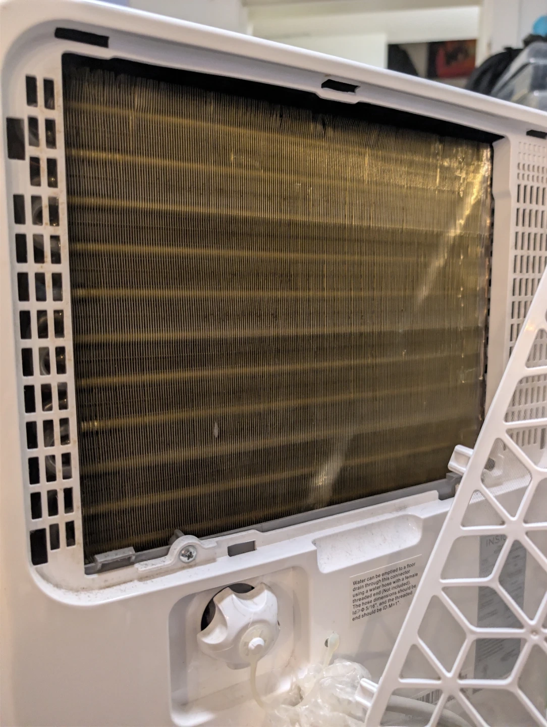 Itβs very clean (we just wiped it down and cleaned the filter) and comes from a smoke-free home. You can use the bucket or hook up a hose to let it drain automatically.