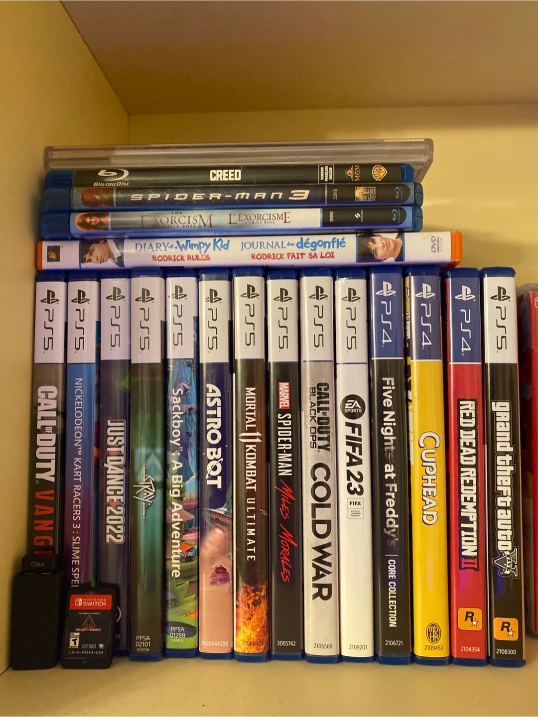 Collection of PlayStation 4 and PlayStation 5 video games. Includes titles like Call of Duty, Spider-Man, FIFA 23, and more. Great for any gamer looking to expand their library!