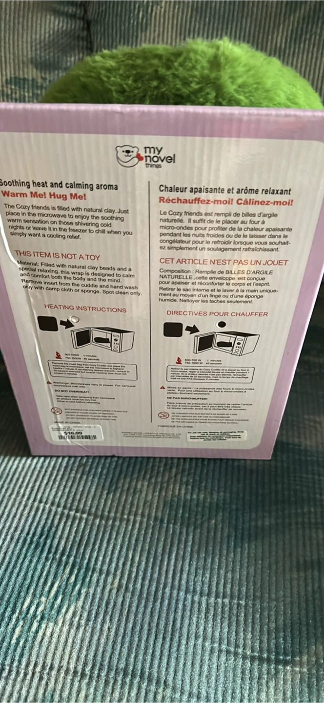 This cozy friend is filled with natural clay beads and a special relaxing, heatable insert. It's designed for soothing heat and calming aroma. Just place it in the microwave to warm it up for a cozy cuddle. Message me if interested thank u
