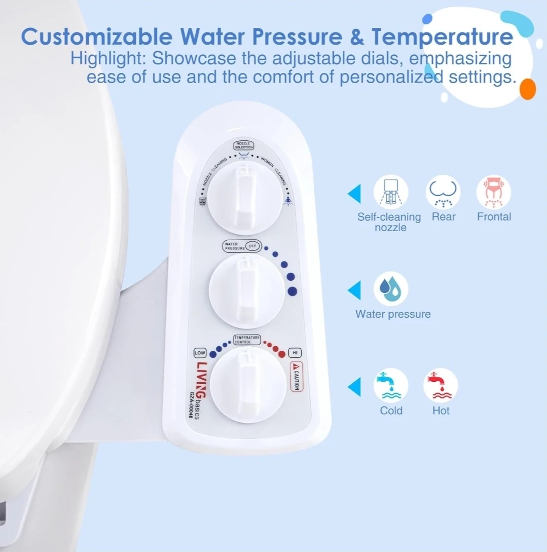 Upgrade your bathroom with this hot & cold water bidet attachment — adjustable temperature, dual nozzles, and a clean non-electric design for comfort and hygiene.