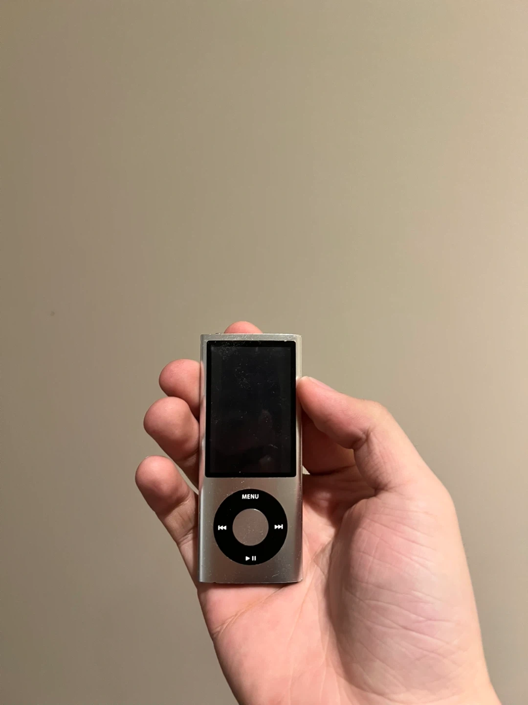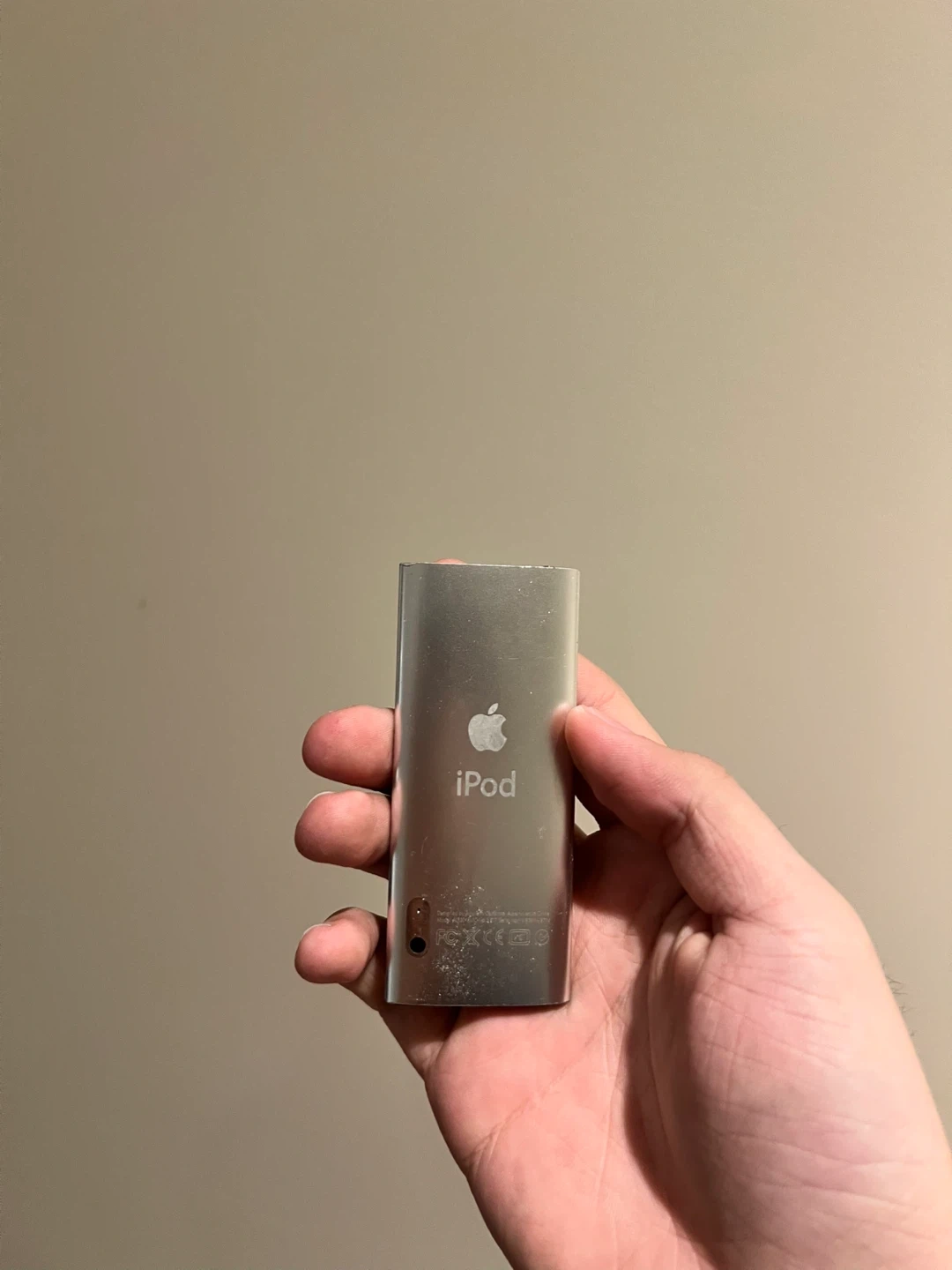 This silver Apple iPod Nano is the 5th generation. Has a camera and is able to play music out loud with built in speaker. Minor scuffs and some scratches. 8GB model,charging cable provided