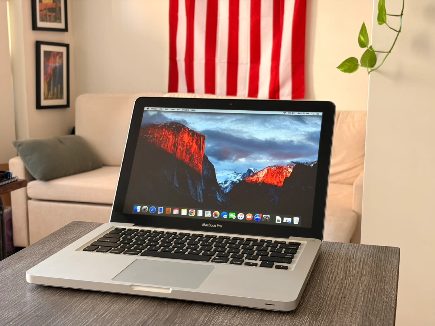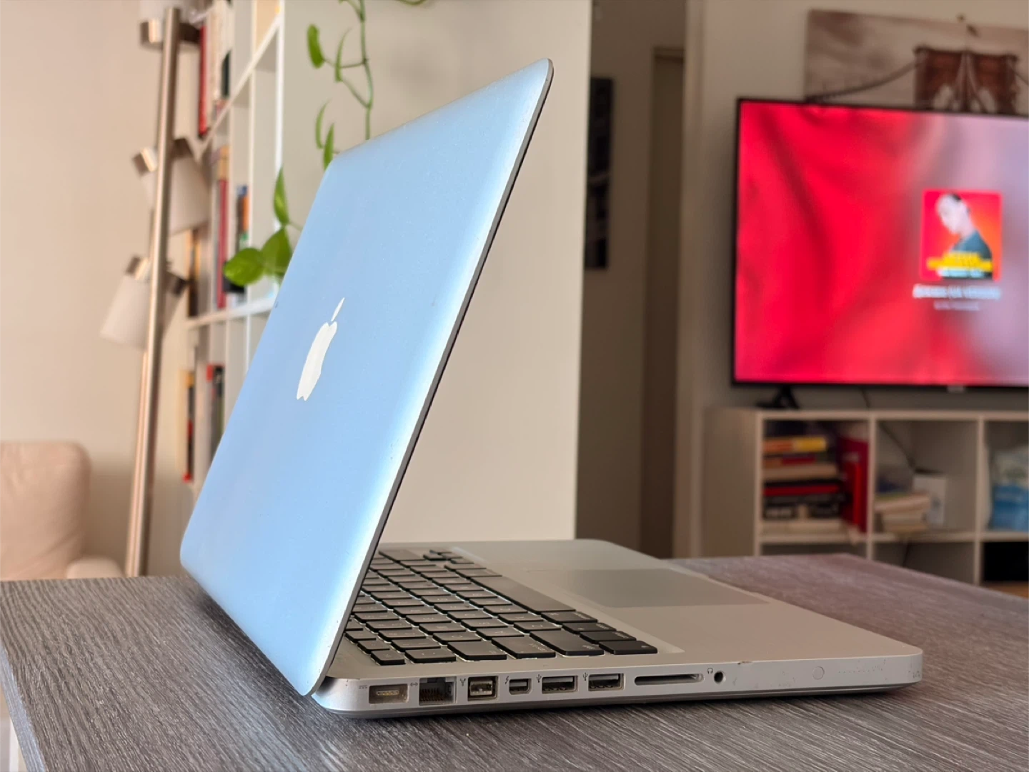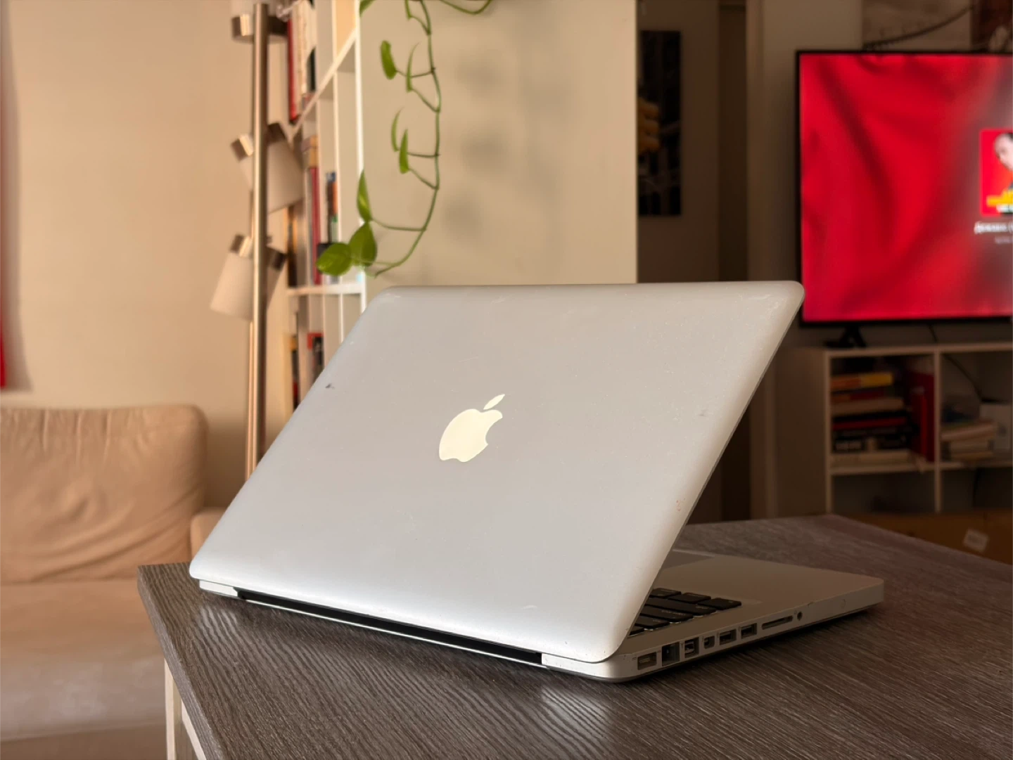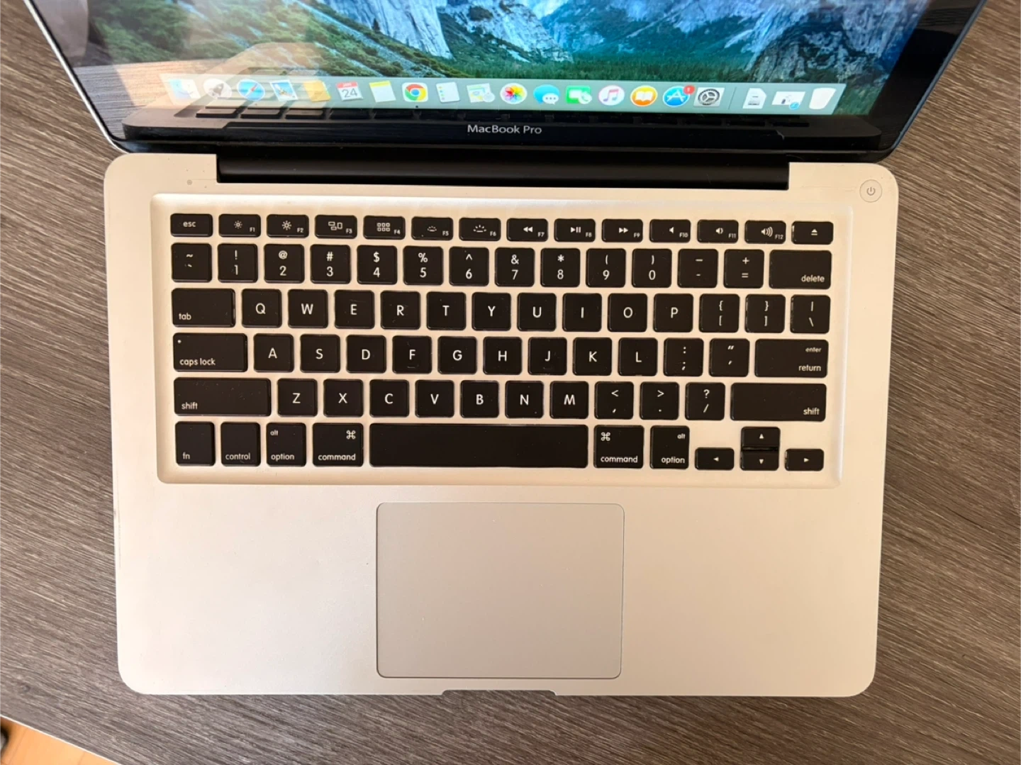 This is a silver Apple MacBook Pro laptop. It's a reliable machine for everyday tasks and productivity. The keyboard are in good condition.