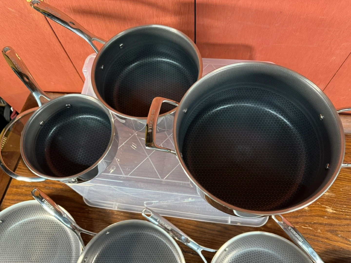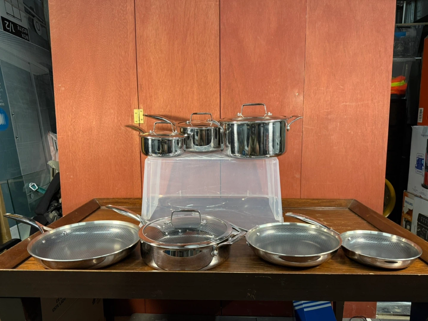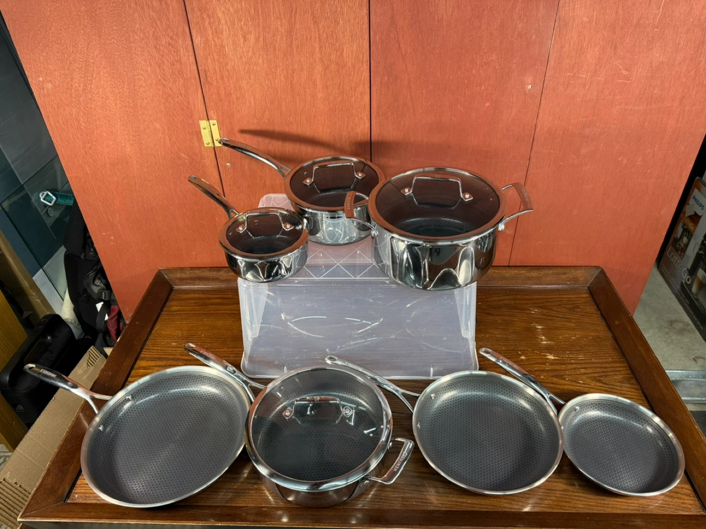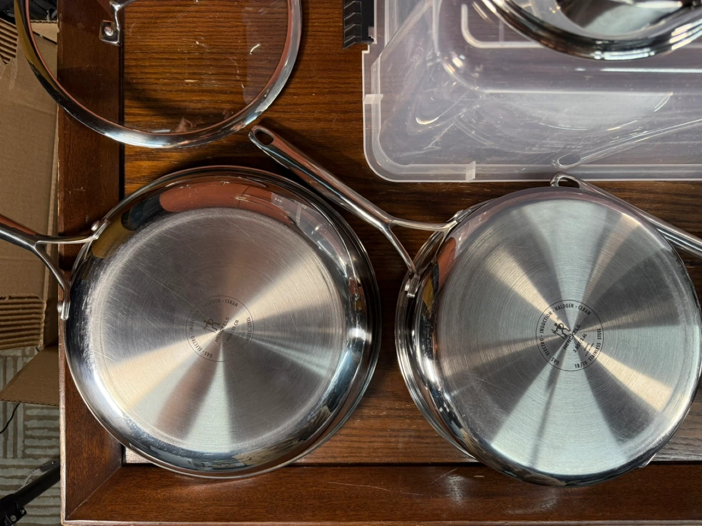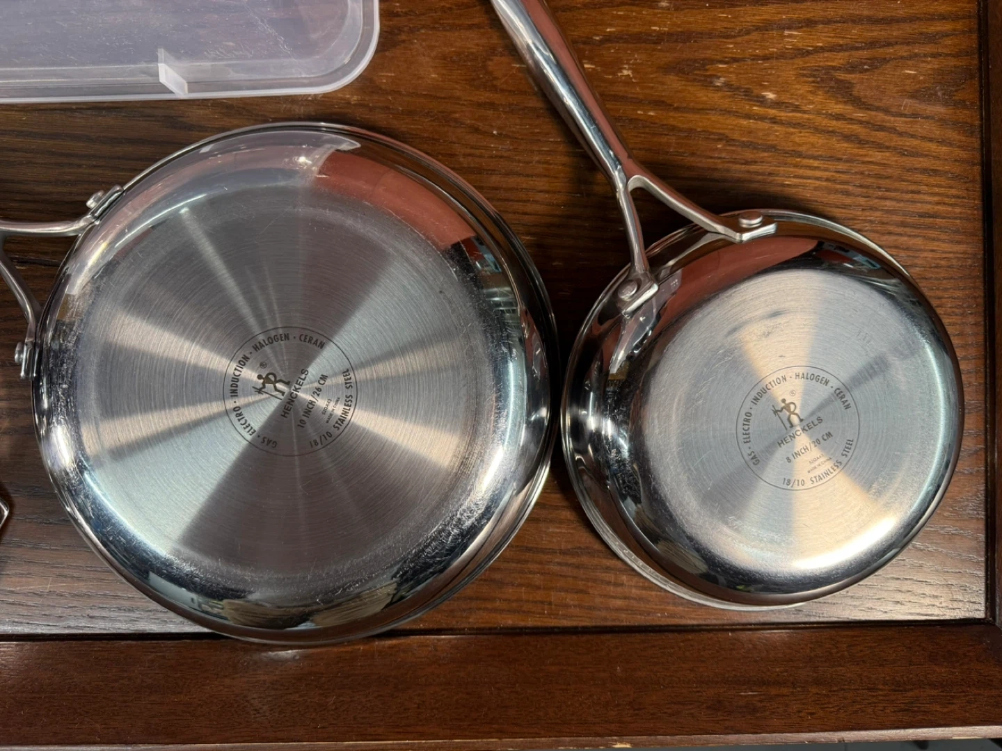This Henckels Paradigm 11-piece stainless steel cookware set is designed for durability and even heat distribution, perfect for any home chef. The set includes a variety of pots and pans to meet all your cooking needs.