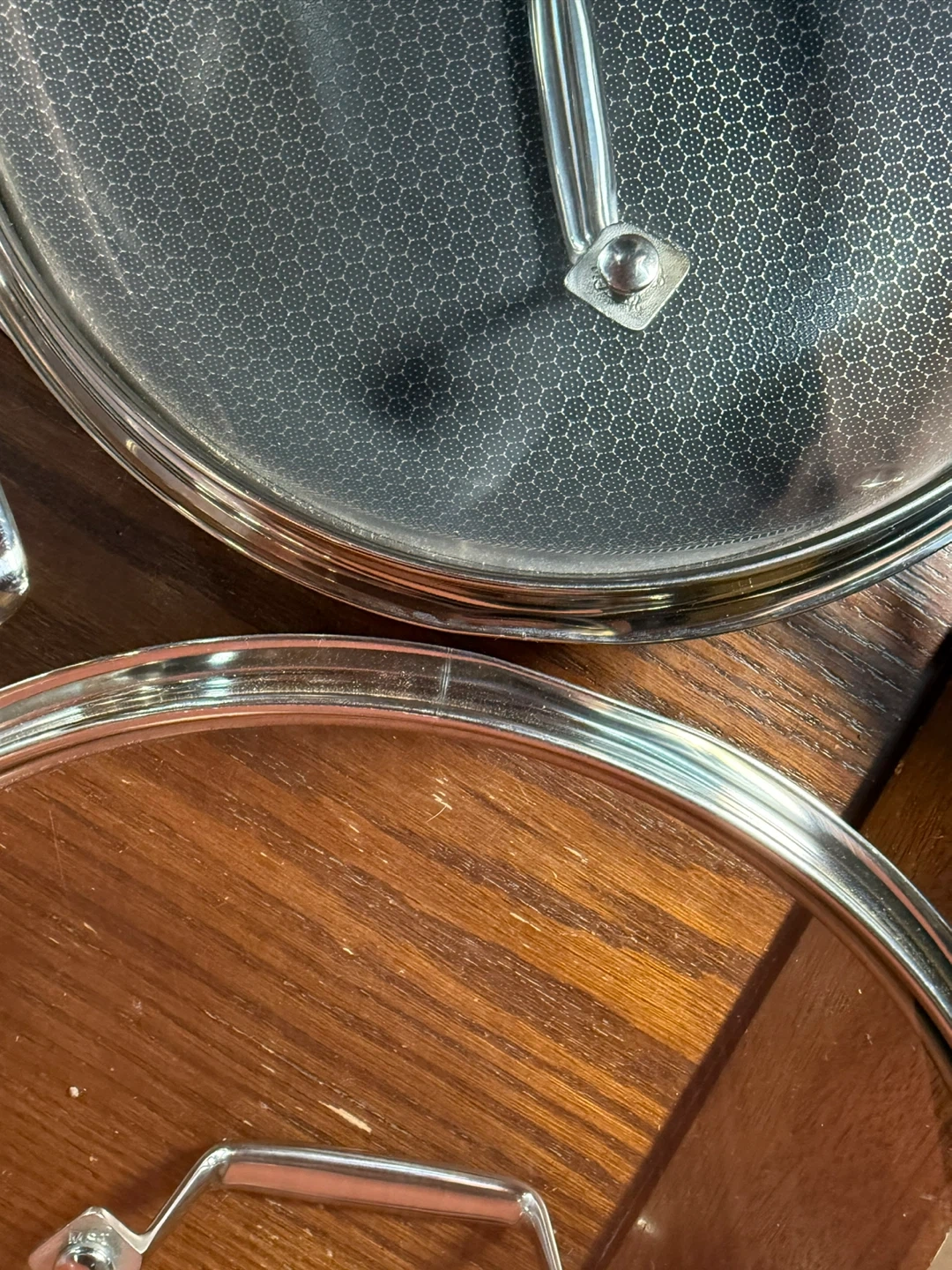 This cookware set is in used condition. It has some minor scratches and signs of wear but it is still in good condition.