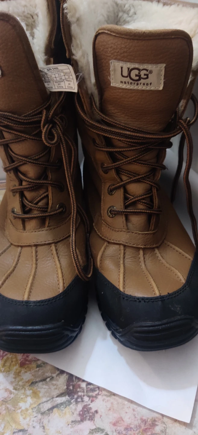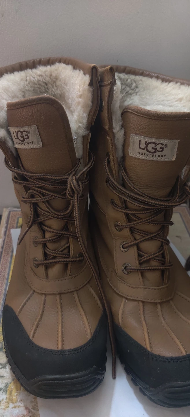 Ugg waterproof winter boots in a warm tan colour. These boots feature a shearling lining for extra warmth and a durable Vibram sole.Price is firm and first come first serve .Check for availability when you are able to pick up . Available for pickup some mornings and most evenings after 4pm