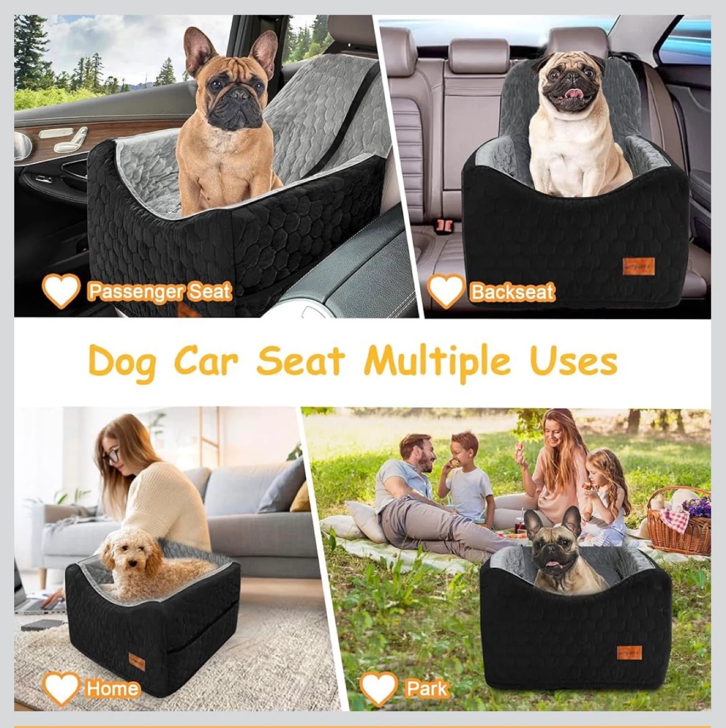 Black Dog Car Seat Booster with Cushion - 17" x 17" x 19"