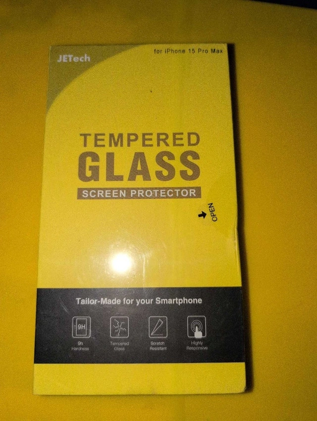Keep your new iPhone 15 Pro Max screen pristine with this JETech tempered glass screen protector! It boasts 9H hardness, scratch resistance and is highly responsive, ensuring your screen stays safe and functional. This is a sealed and brand new screen protector. If the ad is still up, yes, it's still available! Cash accepted.