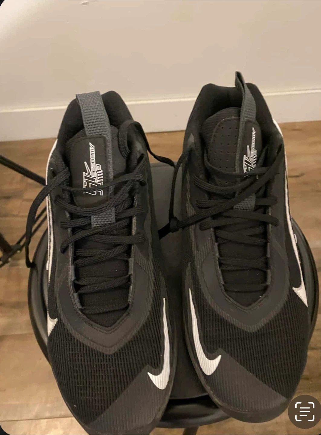 These are black Nike running shoes. They feature a breathable mesh upper and a durable rubber sole. Laces are black.