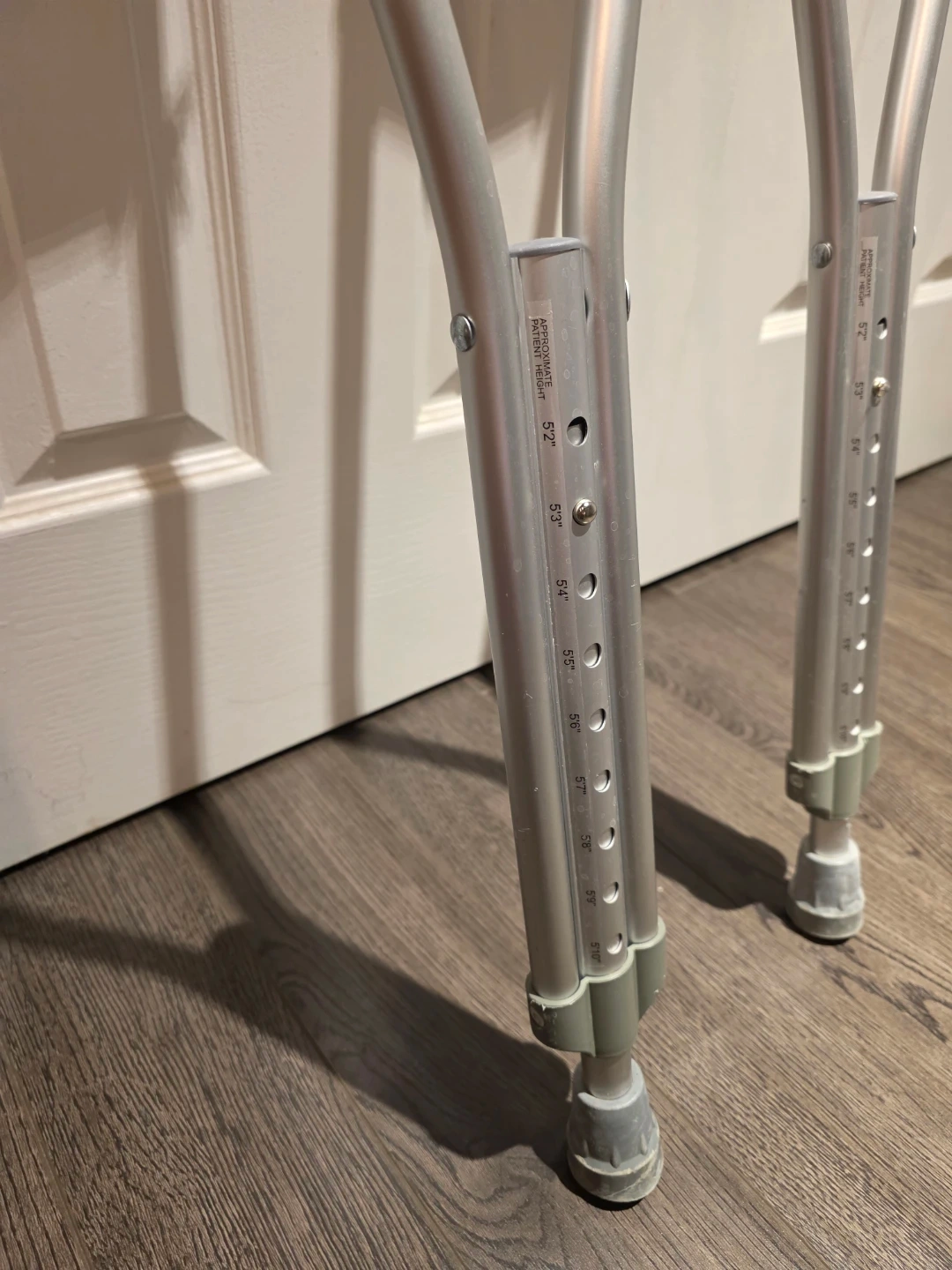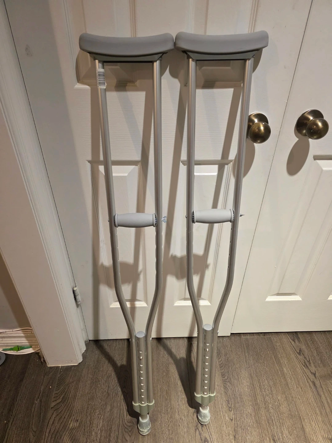 High-quality, lightweight aluminum underarm crutches for sale. Perfect for surgery recovery, broken leg, ankle sprains, or ACL/knee rehab. These are very clean and in good working condition.
