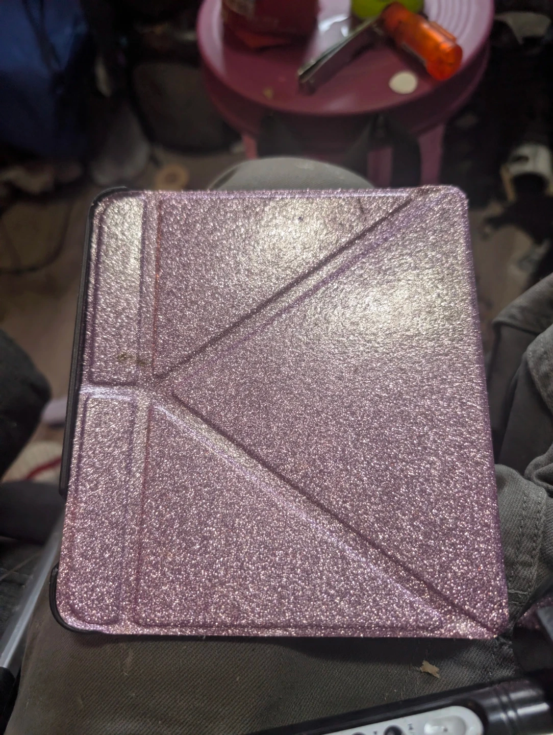 This kindle case offers protection, a sparkly purple glitter finish, a booklike foldable design for easy access to your reader and a textured interior to prevent slipping.