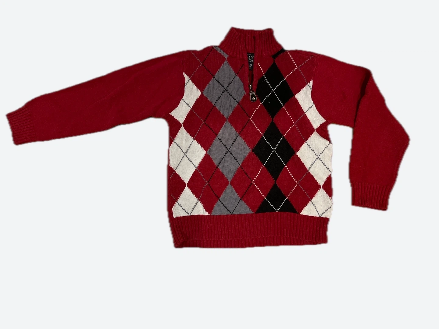 This red zip-up sweater from The Children's Place features a classic argyle pattern. It's a size M/M, which fits like a 7/8.