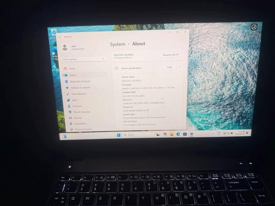 • Processor: Intel Core i5-5300U @ 2.30GHz