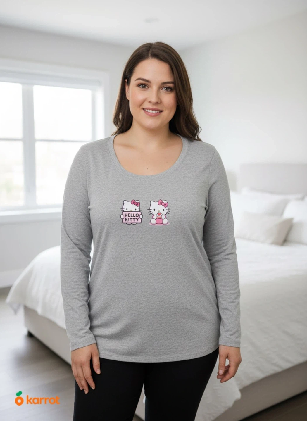 Grey Hello Kitty Long Sleeve Shirt Ladies XXL