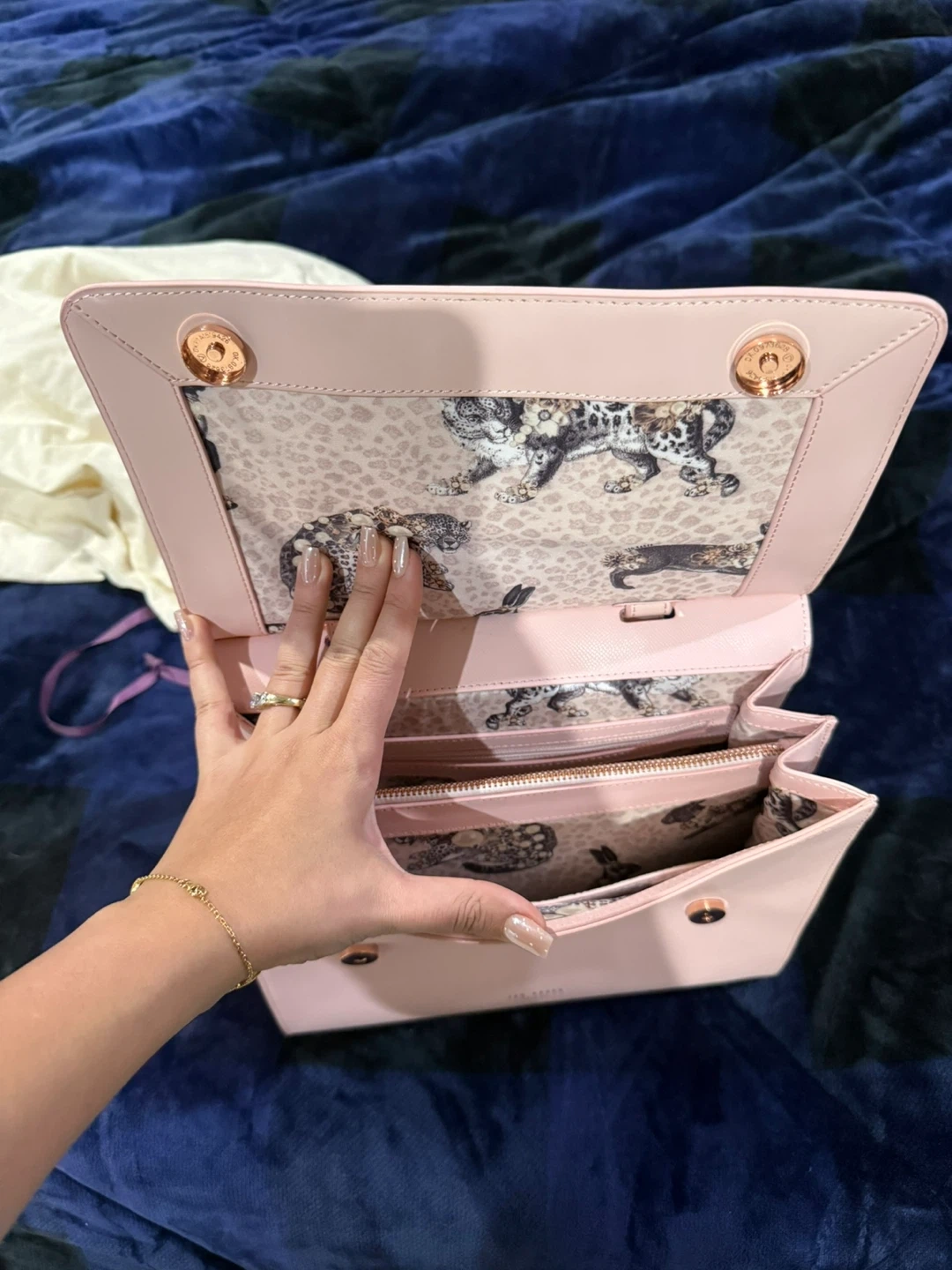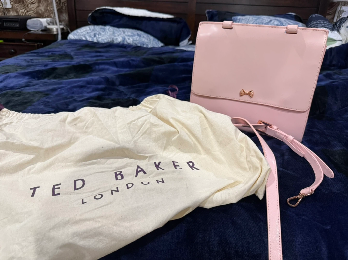 Lovely pink Ted Baker handbag. It's a stylish accessory with a charming bow detail on the front. Comes with its dust bag for protection. Perfect for adding a pop of colour to any outfit! Never used.