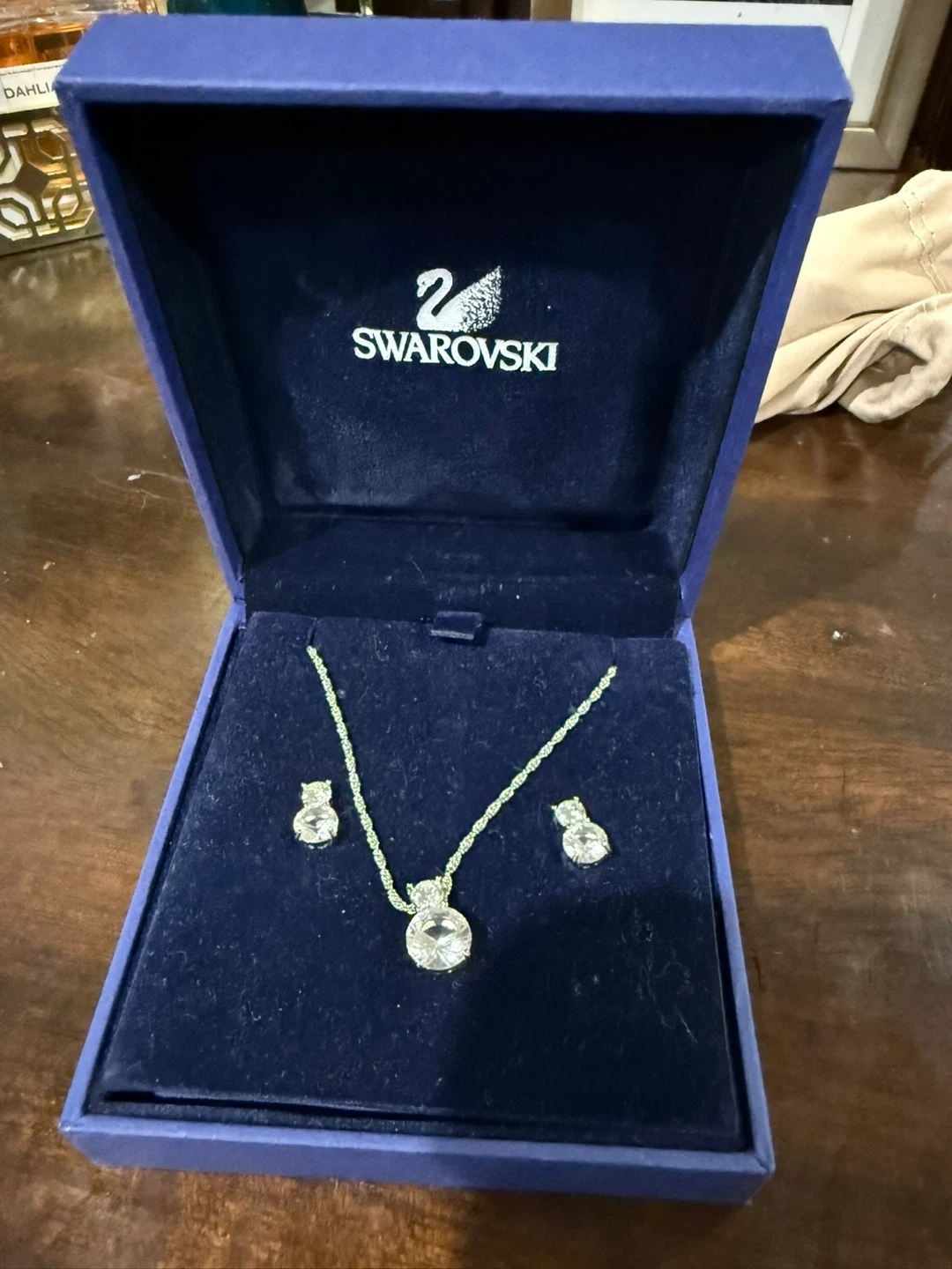 This is a Swarovski necklace and earring set. It comes with the original box.never used.