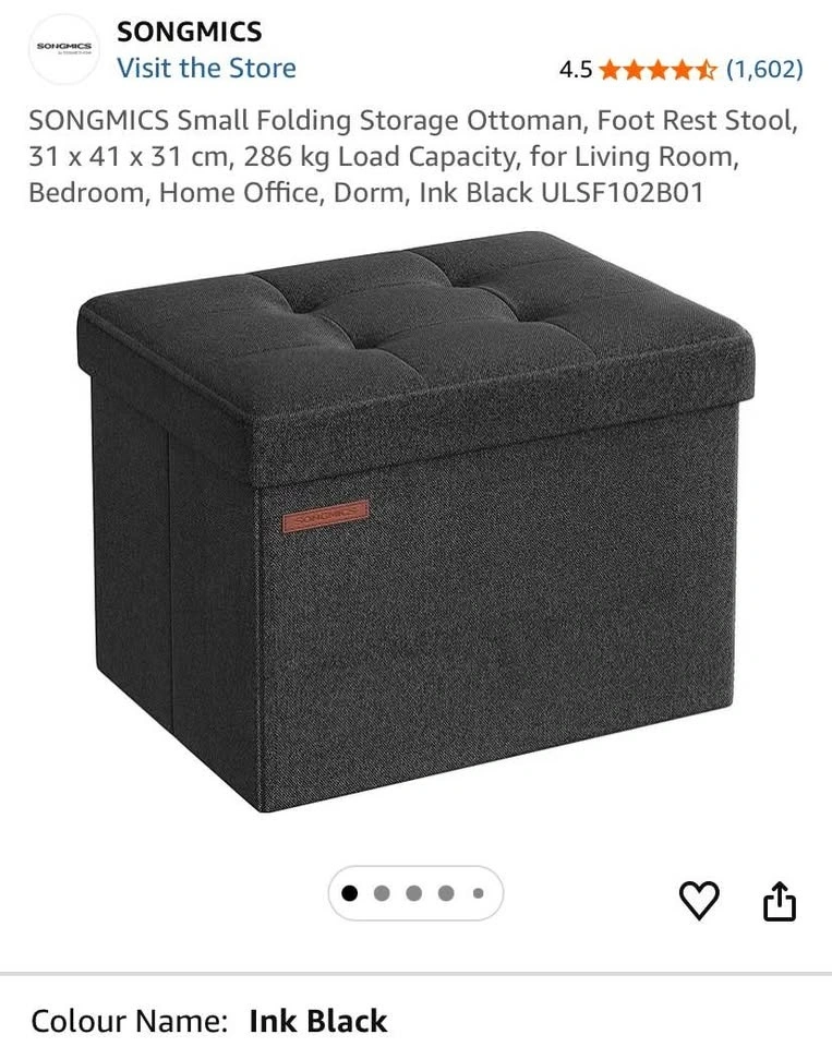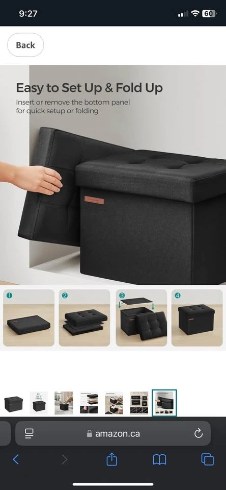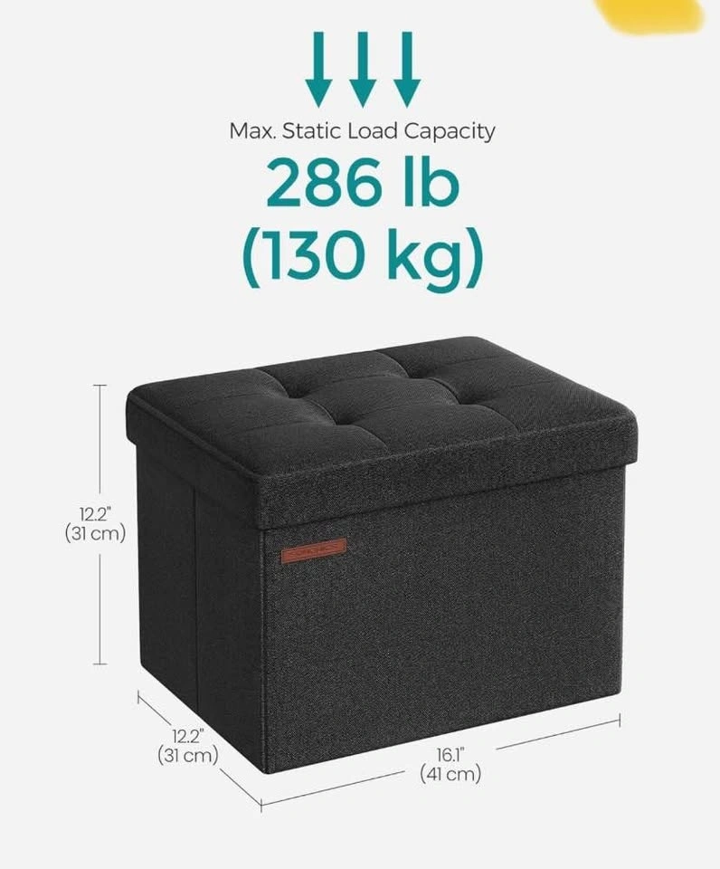Pick up: Brock Road and Rex Heath Drive in Pickering. SONGMICS Small Folding Storage Ottoman, Foot Rest Stool. 31 x 41 x 31 cm, 286 kg Load Capacity. Great for Living Room, Bedroom, Home Office, or Dorm. Ink Black. ULSF102B01.