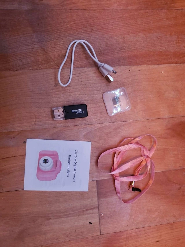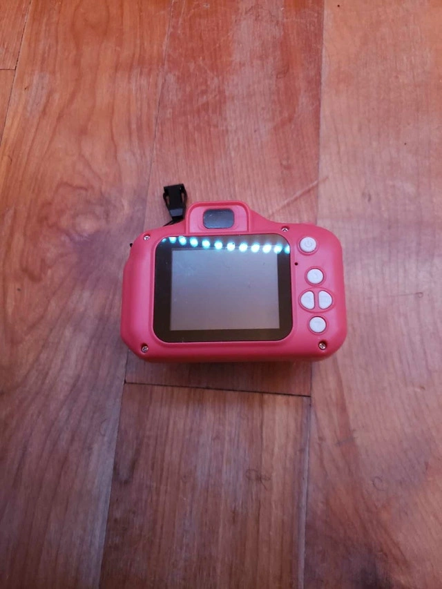 This gently used pink cartoon digital camera is designed for kids, offering a fun and easy way to capture their world through photos and videos. It comes with a built-in rechargeable Li-ion polymer battery, expandable memory, and connects easily to your computer for file transfers. This camera is in good condition and ready for its next adventure! Video Capture, Photo Capture, Connect to Your Computer, Built-In Rechargeable Li-ion Polymer Battery, Expandable Memory. Let me know if you're interested!