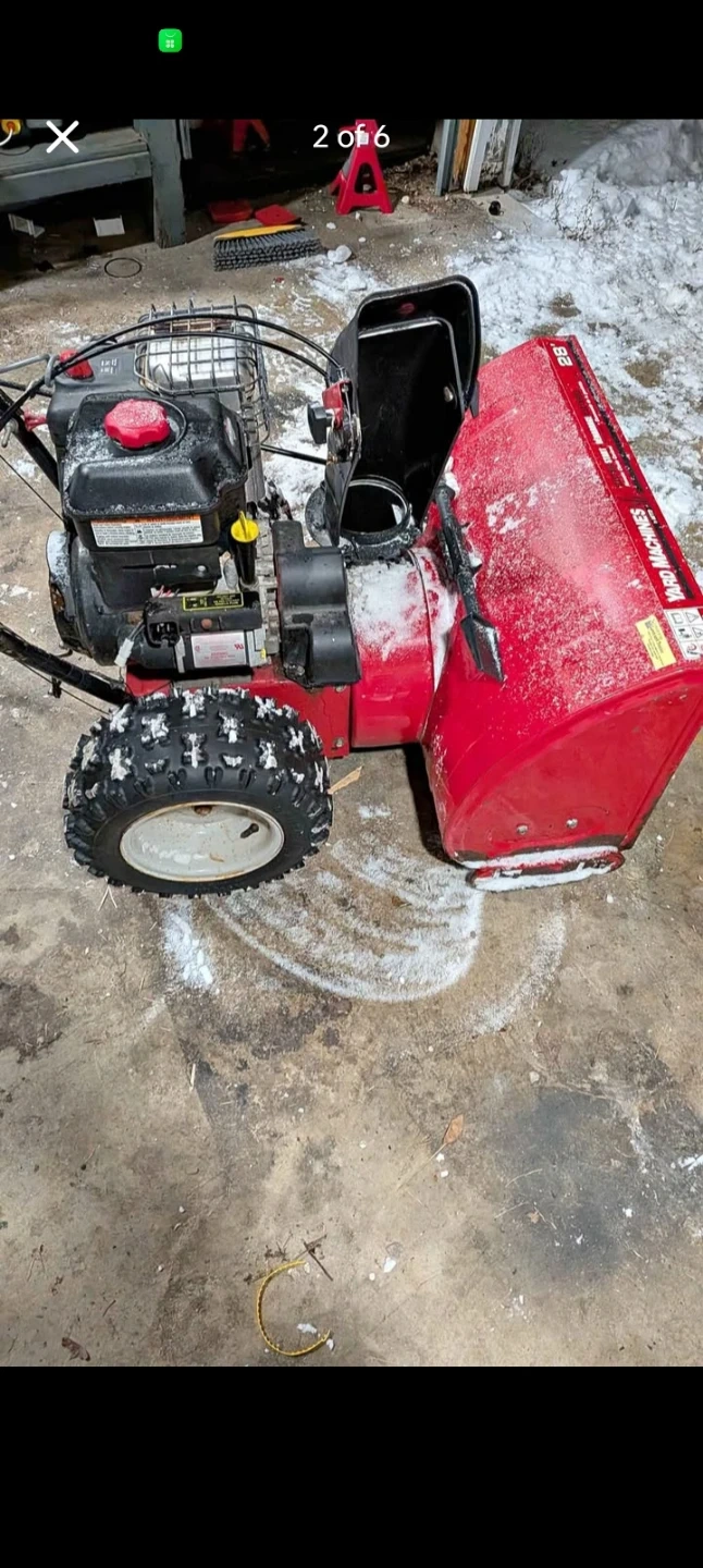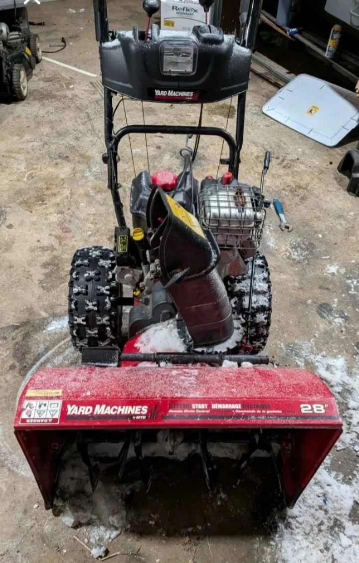 Yard Machines 28-inch snow blower. It's equipped with electric start and remote chute control. This snow blower is ready for winter!