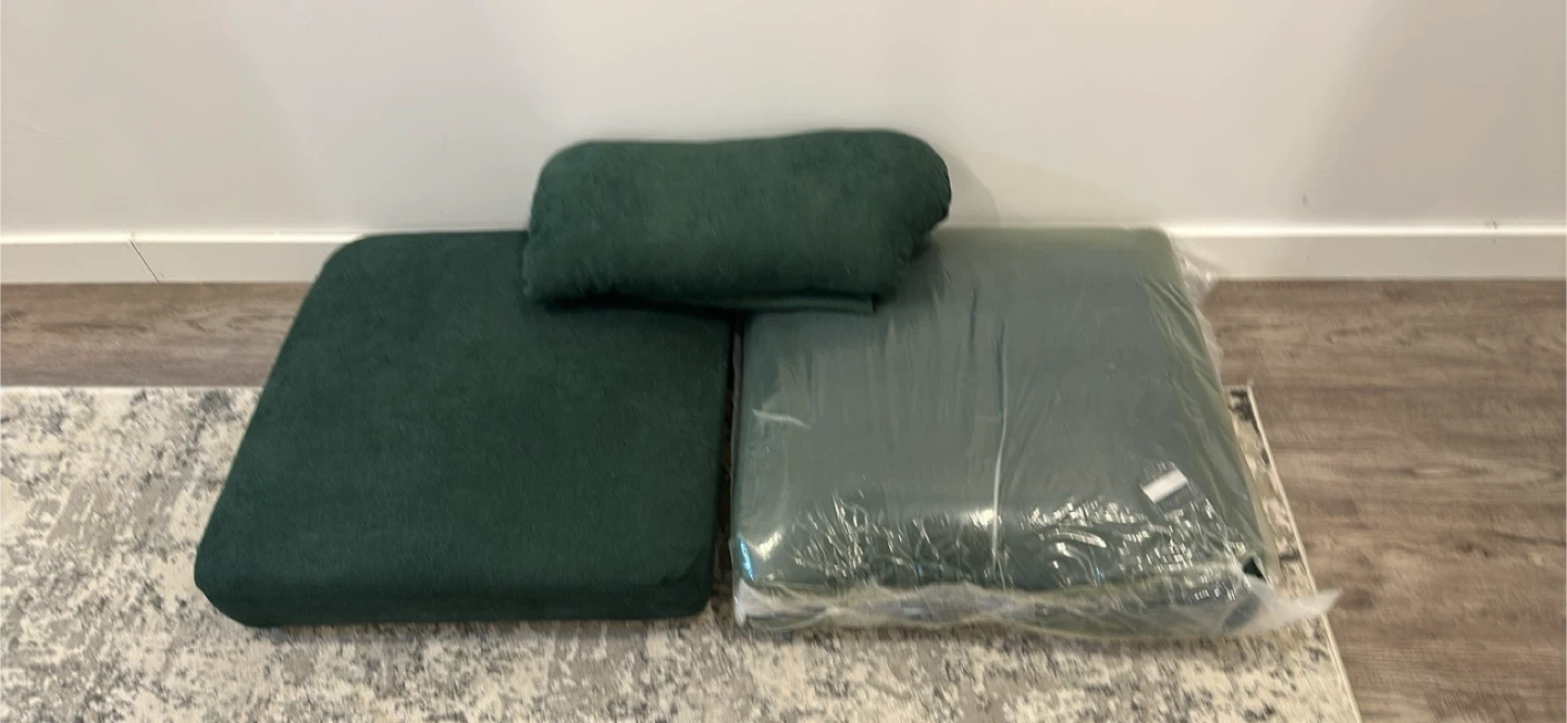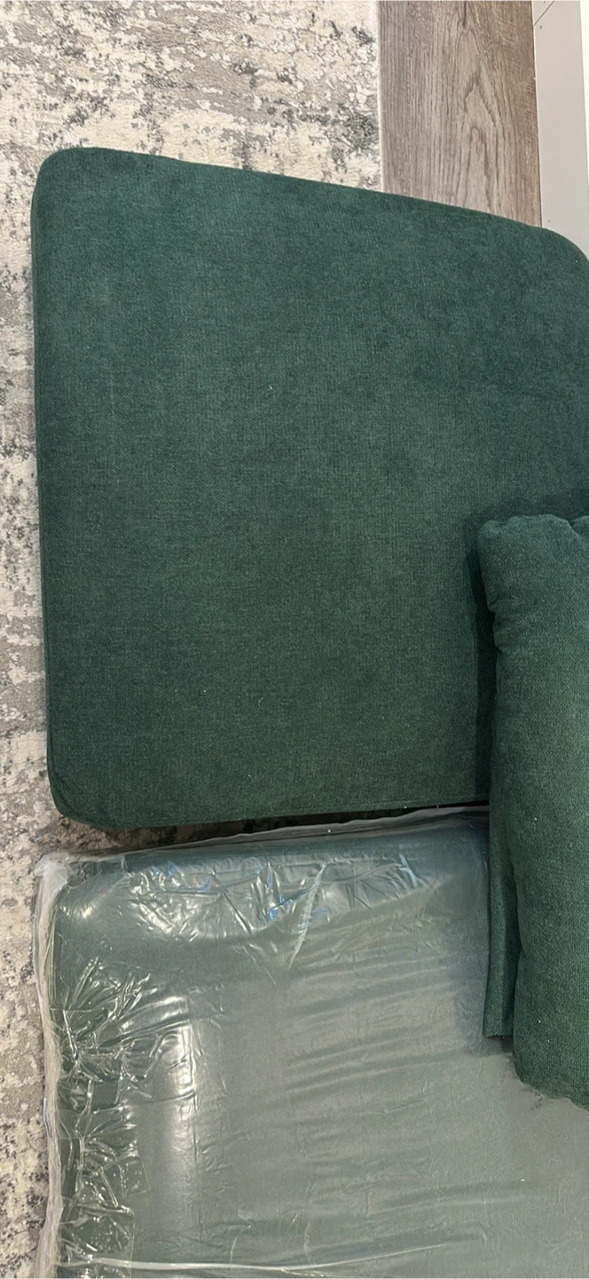 This brand new cushions They're upholstered in a durable beige fabric. The green velvet bolster pillows Made with sturdy materials for lasting comfort.
