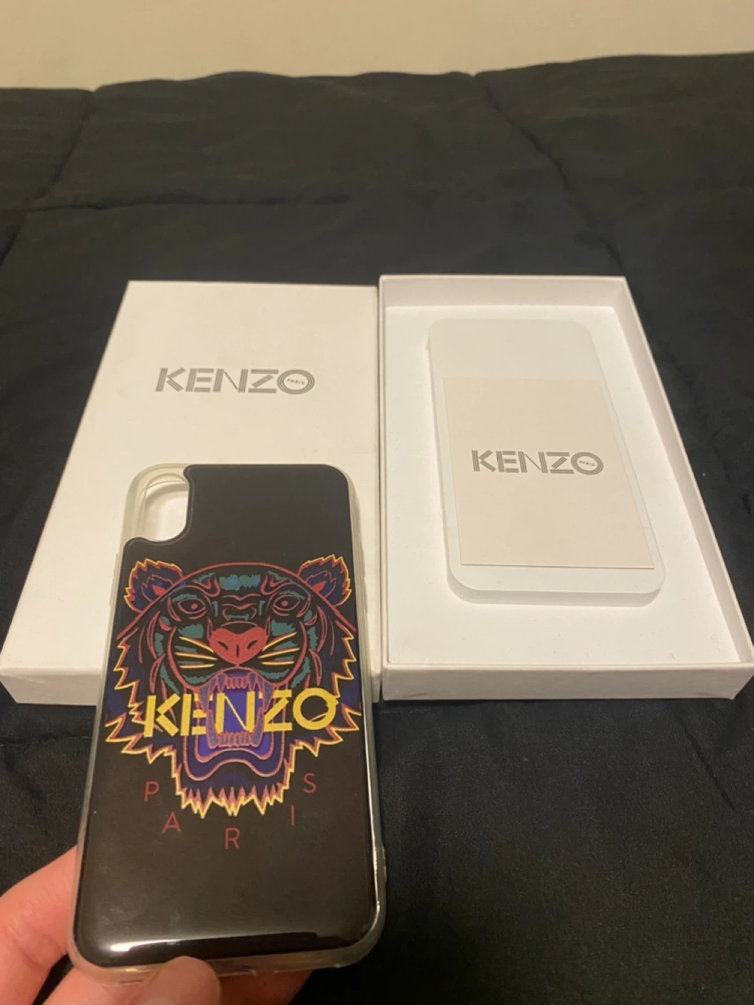 This KENZO Paris phone case features the iconic tiger design. It's made in France and comes with its original box. Protect your phone with this stylish accessory!