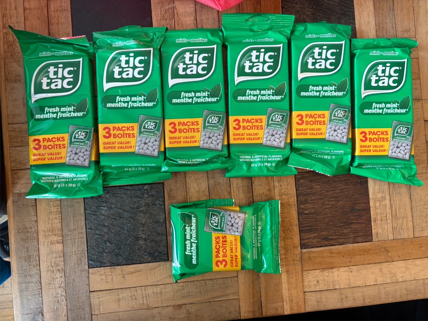 Fresh mint Tic Tac candy. Each sleeve contains 3 individual packs. Total of 7.5 sleeves included. Great value!