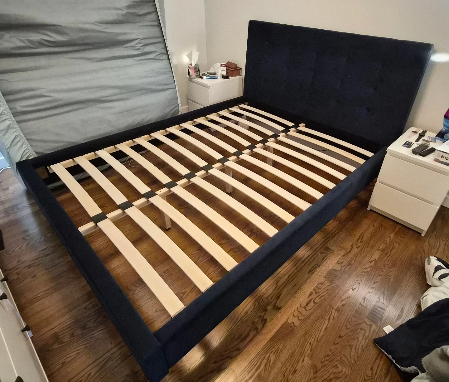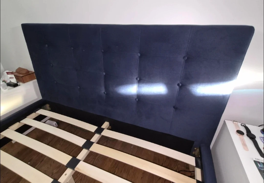 Dark Blue Upholstered Queen Bed frame