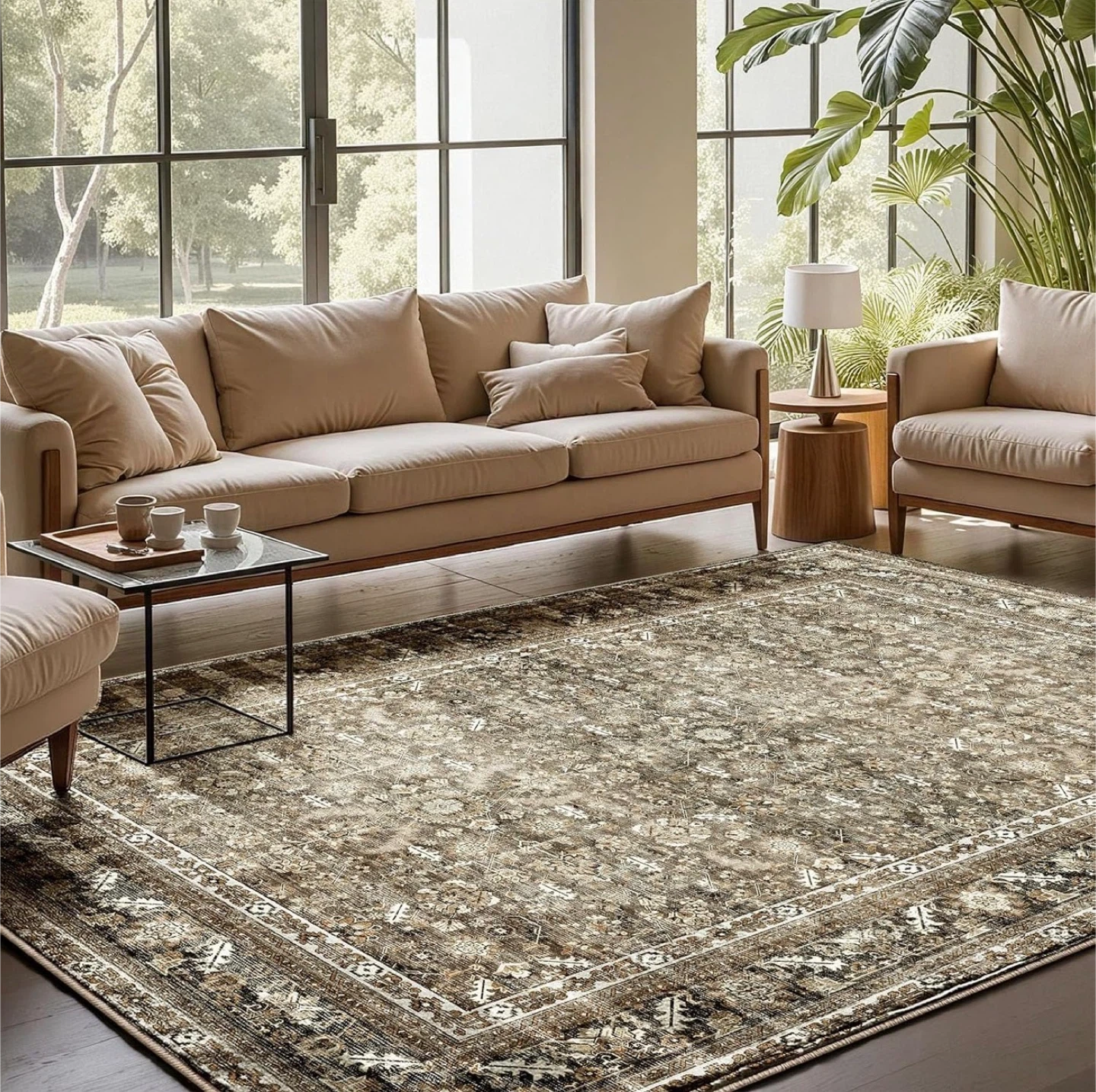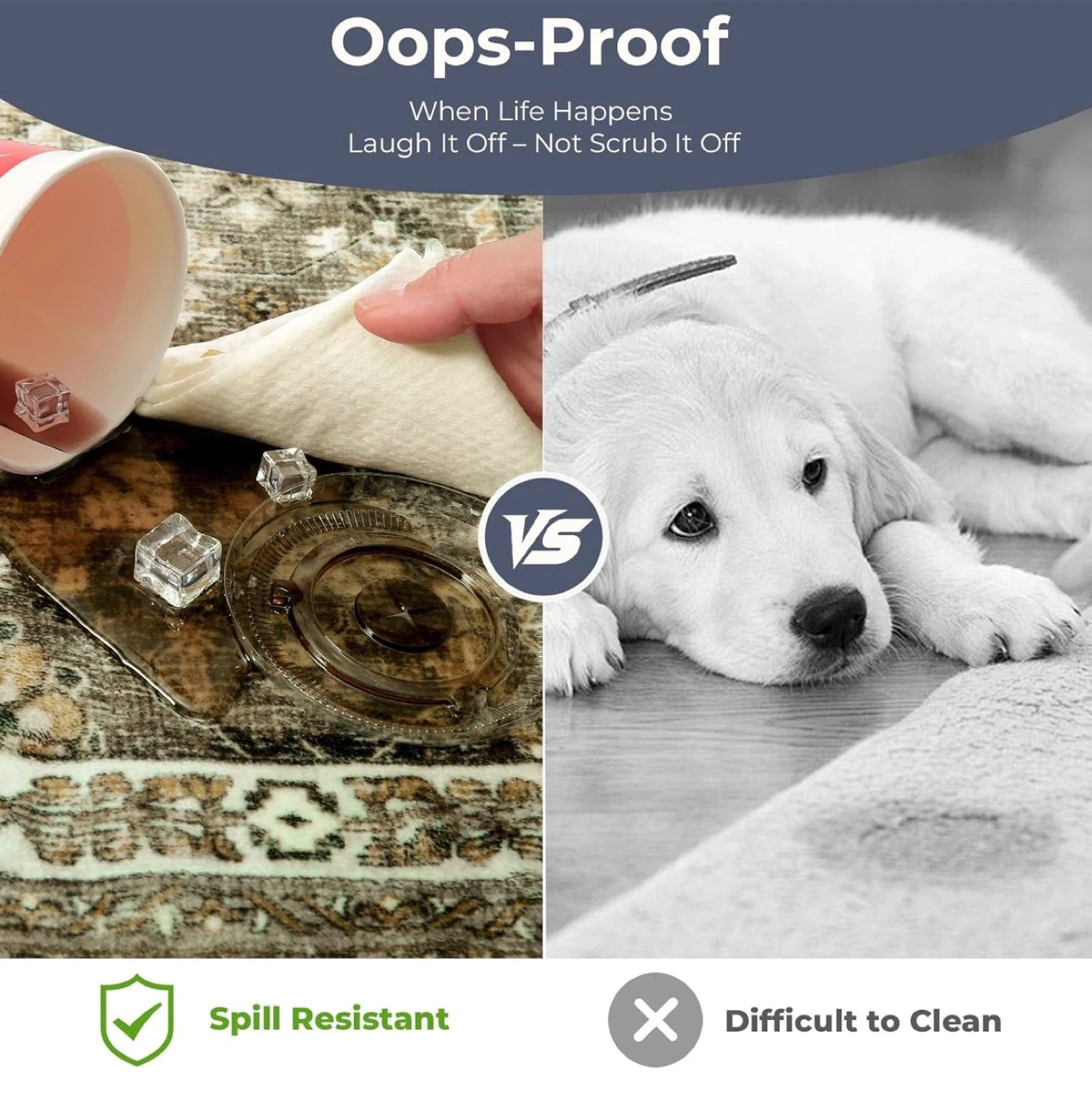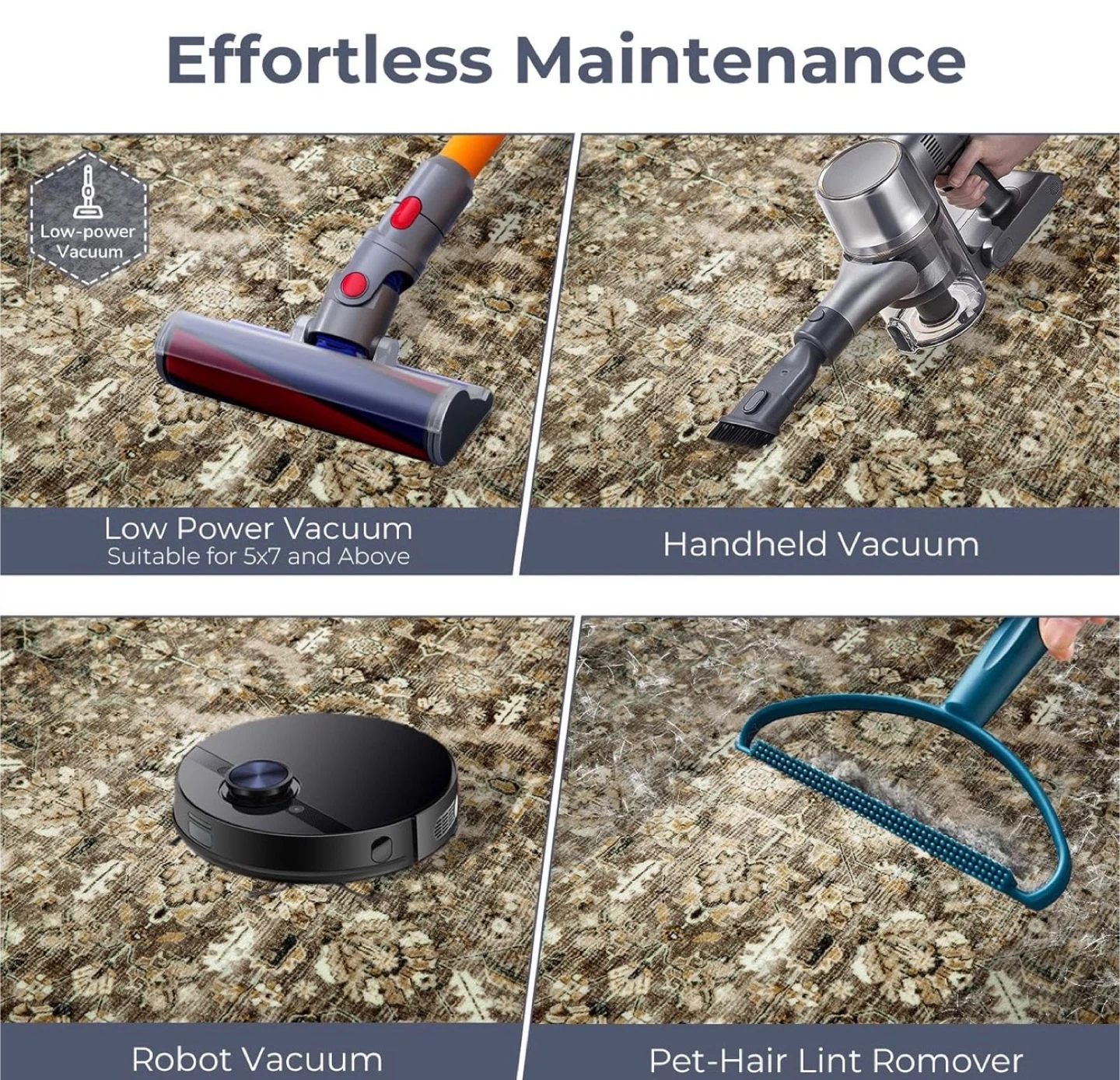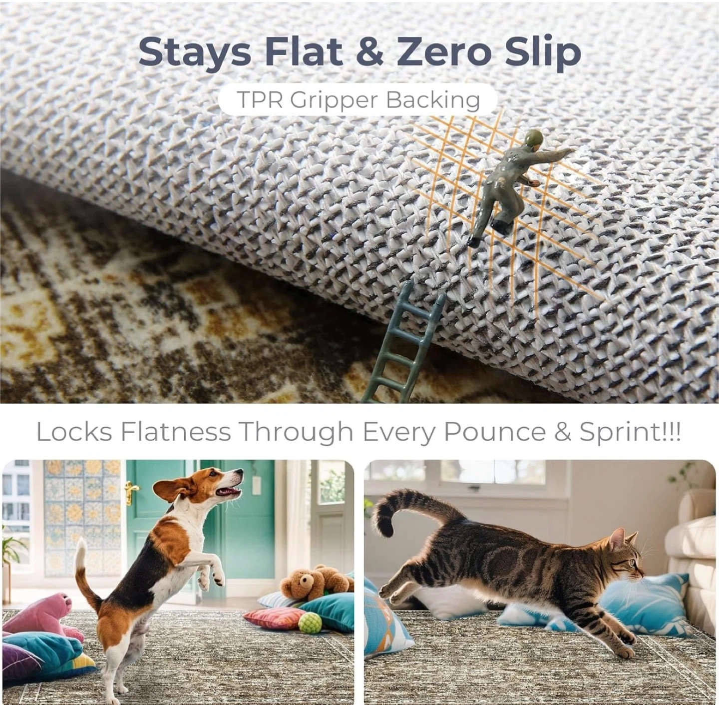 This Oppodream area rug features a distressed vintage design for an authentic look. It's made with a cloud soft velvet feel and has a cashmere-inspired pile. The rug's pile height is 0.16inch/4mm and it boasts excellent color retention, staying vibrant after multiple washes. It also comes with a TPR gripper backing to stay flat and slip-free!