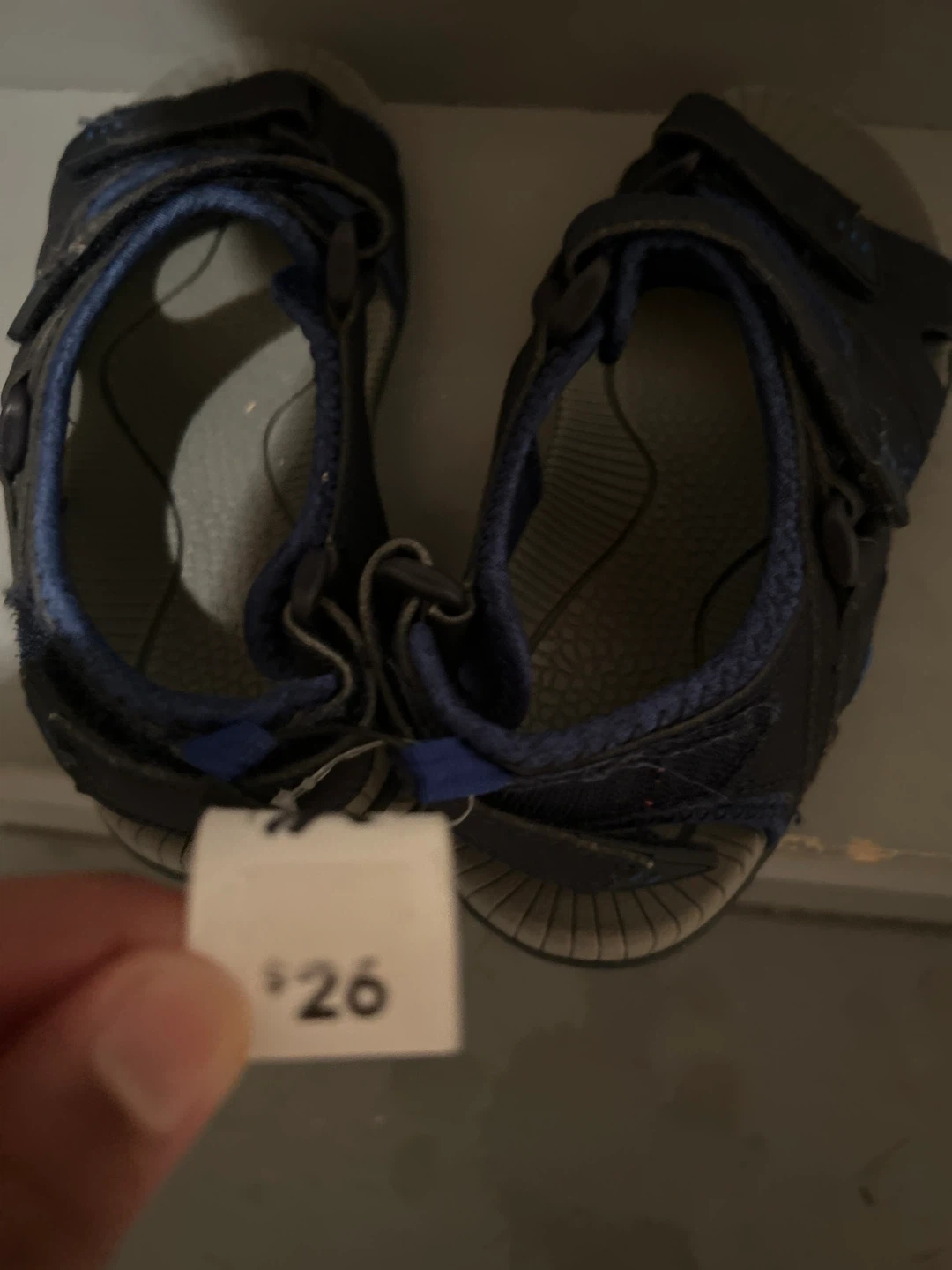 These blue sandals are great for active kids. They have adjustable velcro straps for a secure fit. The soles are textured for good grip.joe fresh . size 4