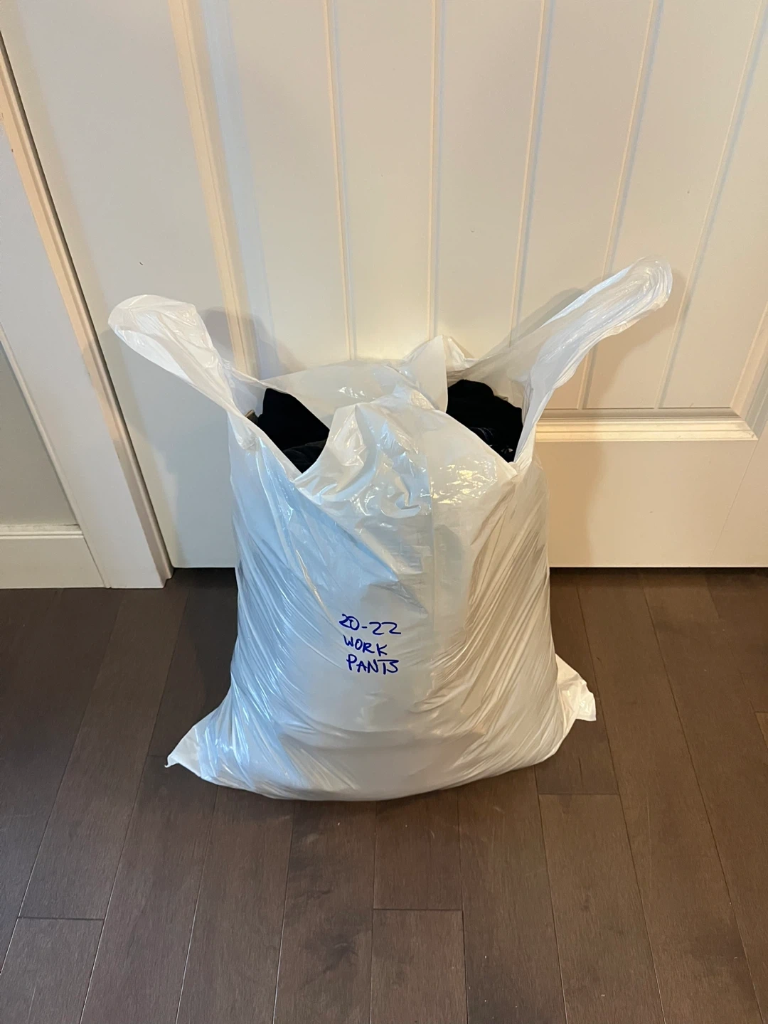 Bag of assorted women's clothing, including jeans, work pants, and casual mix items. Sizes range from 20-22. Great for building a wardrobe!