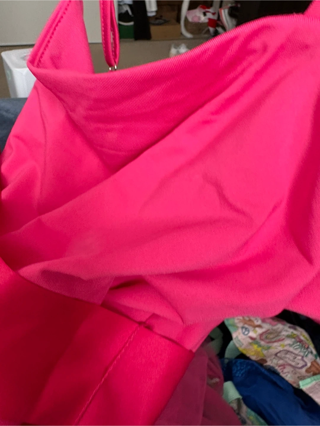This adorable dress is a vibrant hot pink, perfect for special occasions! It features a stretchy bodice and a full, fluffy tulle skirt that's sure to twirl. A satin ribbon sash cinches the waist for a sweet finish. It's a fun and festive choice for parties or performances!