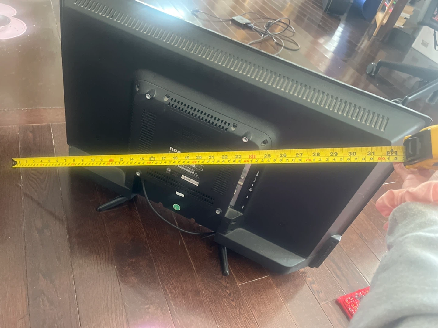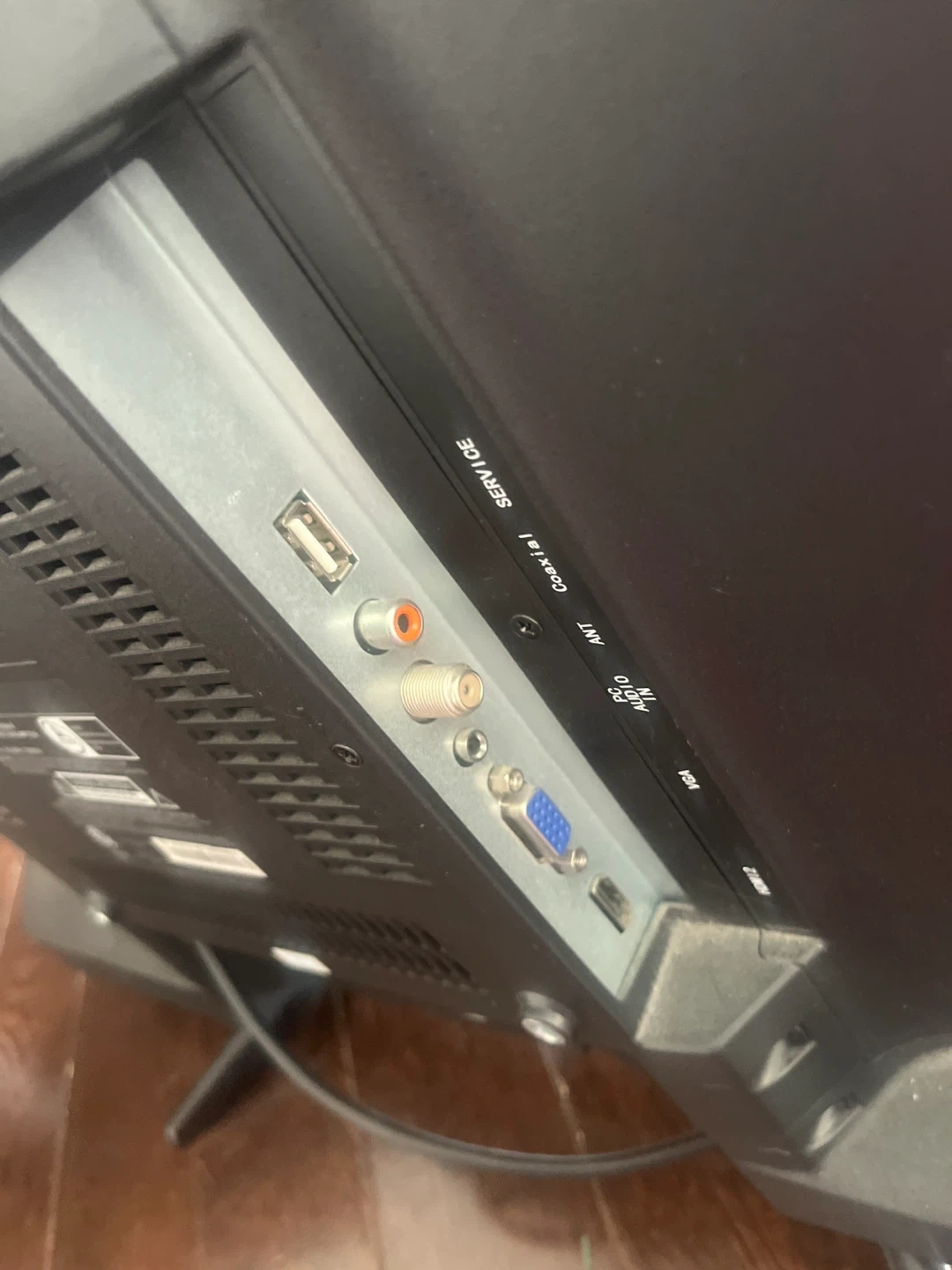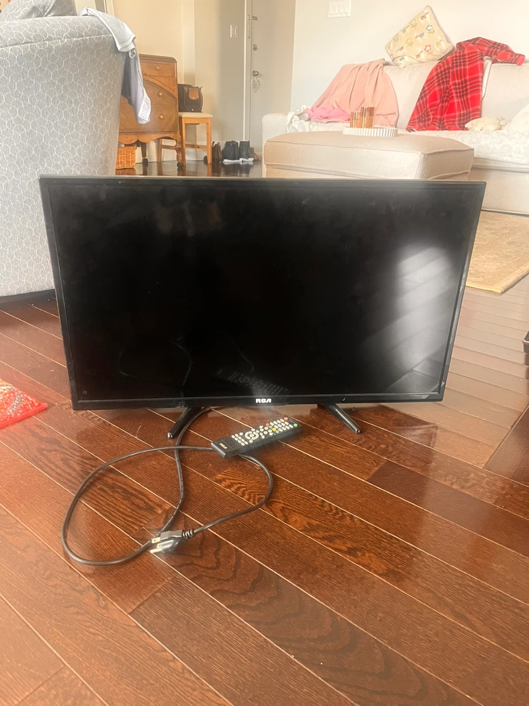 This RCA 32-inch flat screen TV comes with its original remote. It's a good option for a secondary display or a smaller room. The screen measures 32 inches diagonally.
