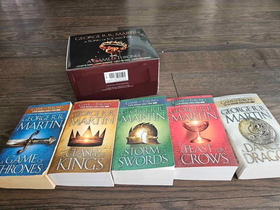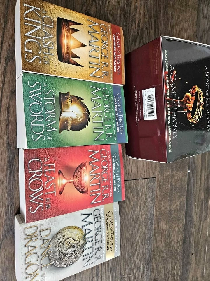 The whole set of George R. R. Martin's A Game of Thrones (Song of Ice and Fire Series): A Game of Thrones (used), A Clash of Kings (used like new), A Storm of Swords (new), A Feast for Crows (new), and A Dance with Dragons (new). Pet free and smoke free home.