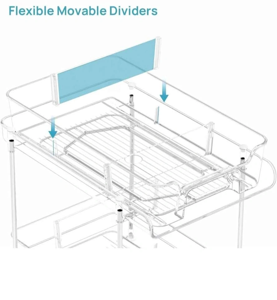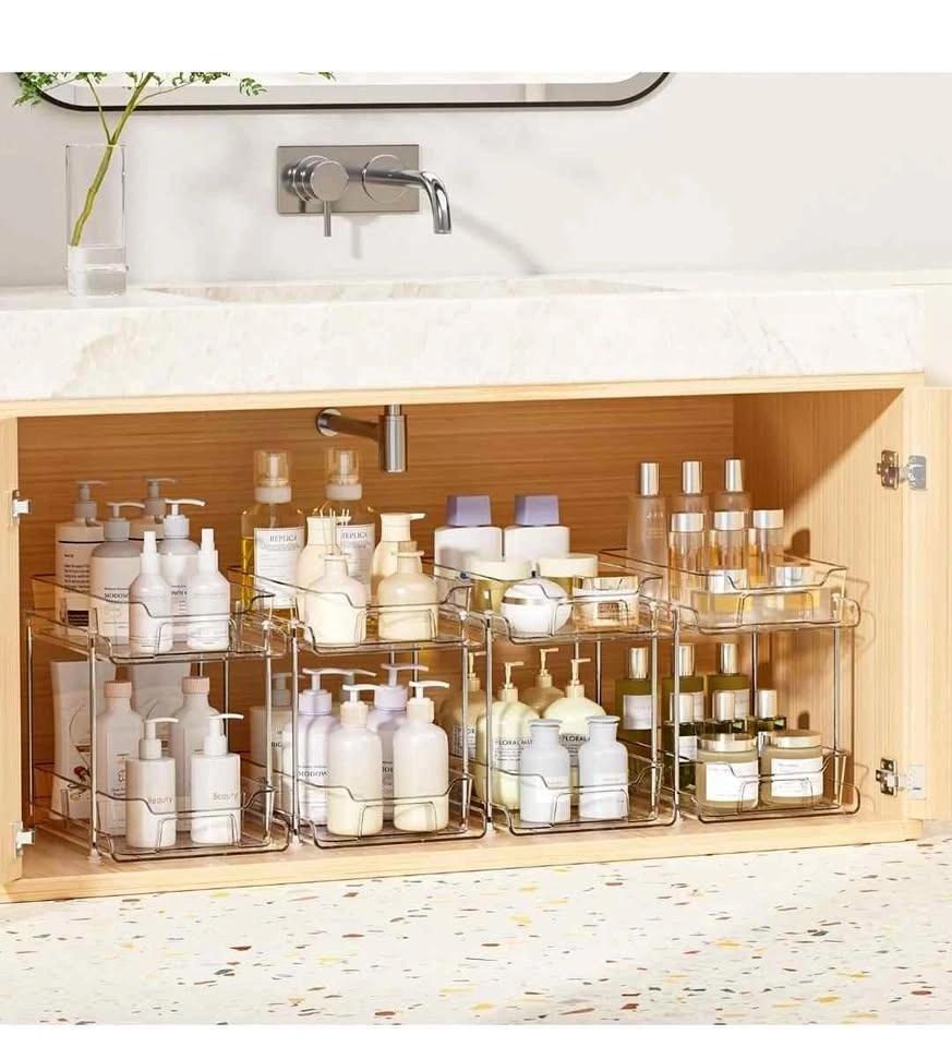 Brand new 4 Pack 2 Tier Under Sink Organizers and Storage. Clear Kitchen Pantry Organization, Pull Out Organizer. Each 2 Tier organizer for $15. Make a deal and take all. Pet free and smoke free home.