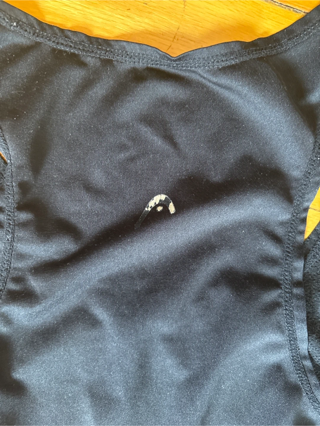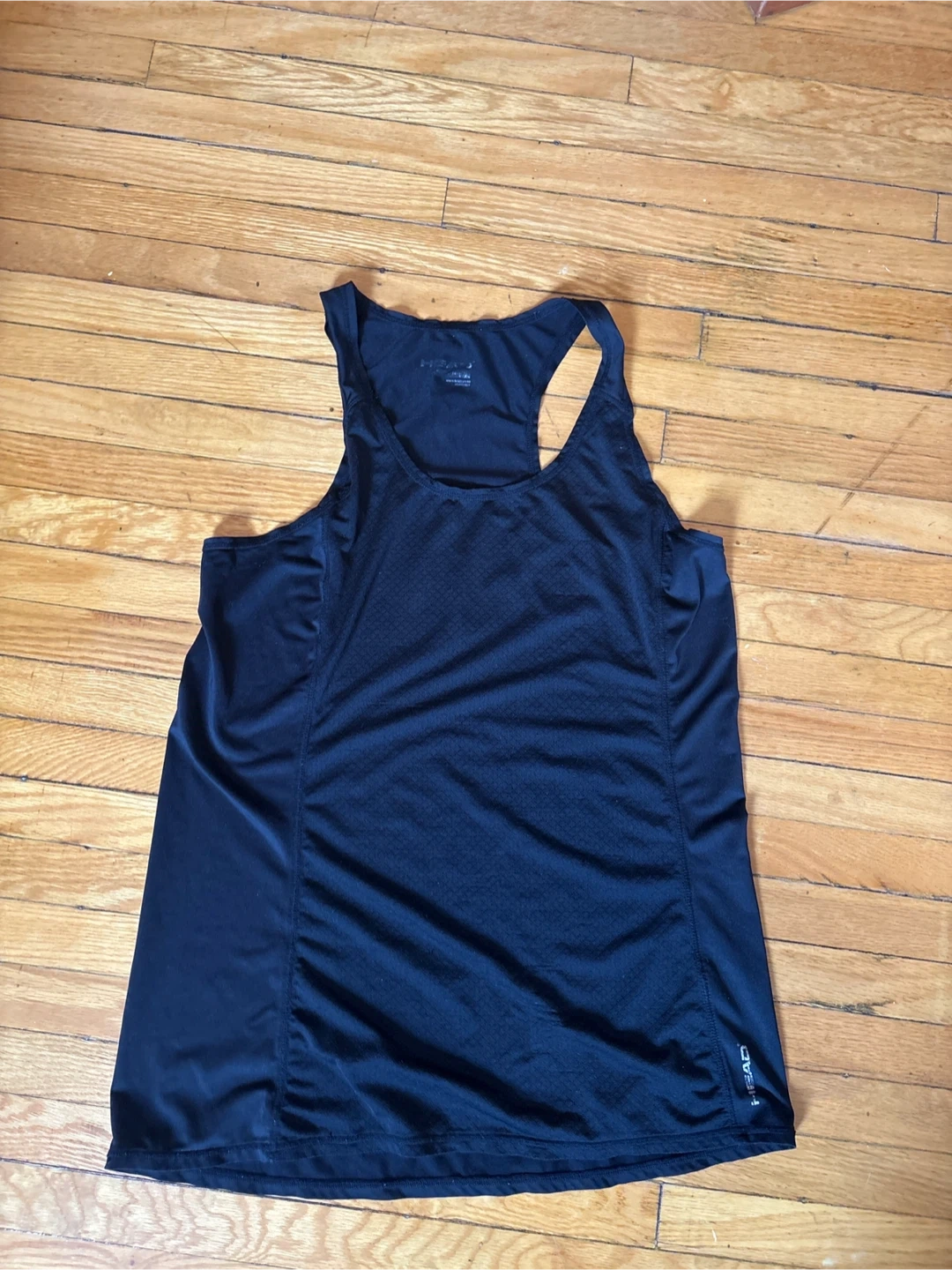 This is a black HEAD athletic tank top. It's made of a lightweight, breathable fabric. Perfect for workouts or casual wear!