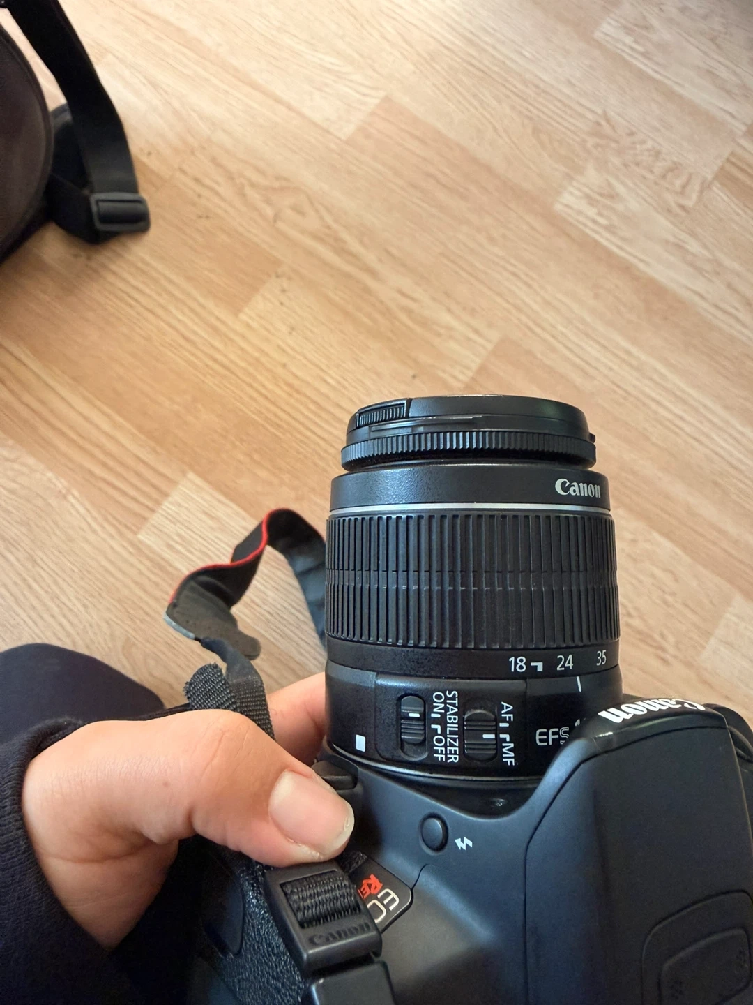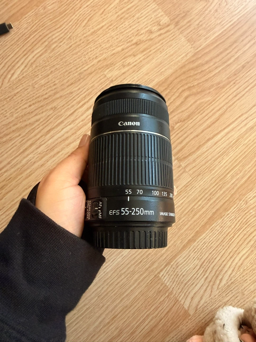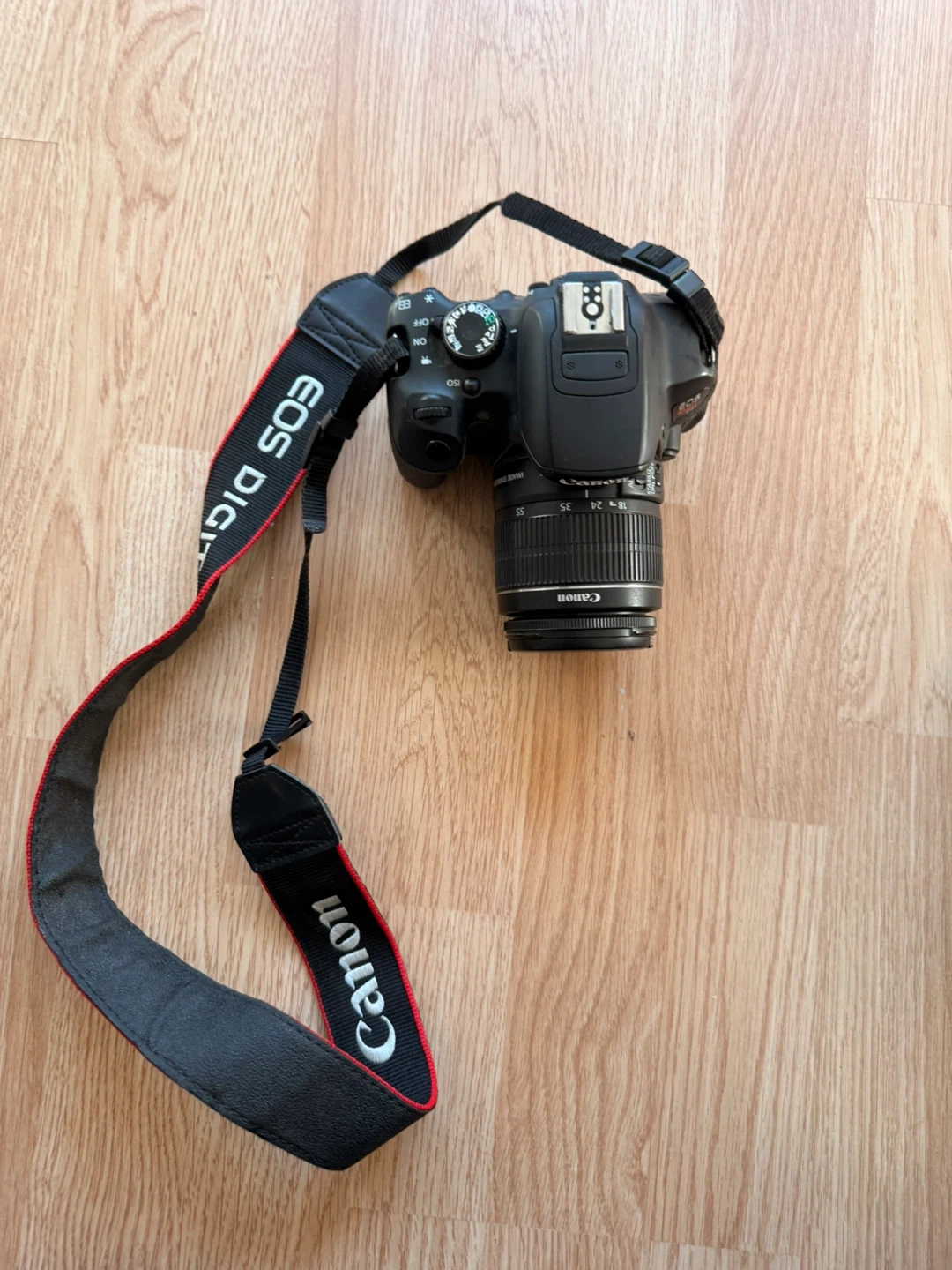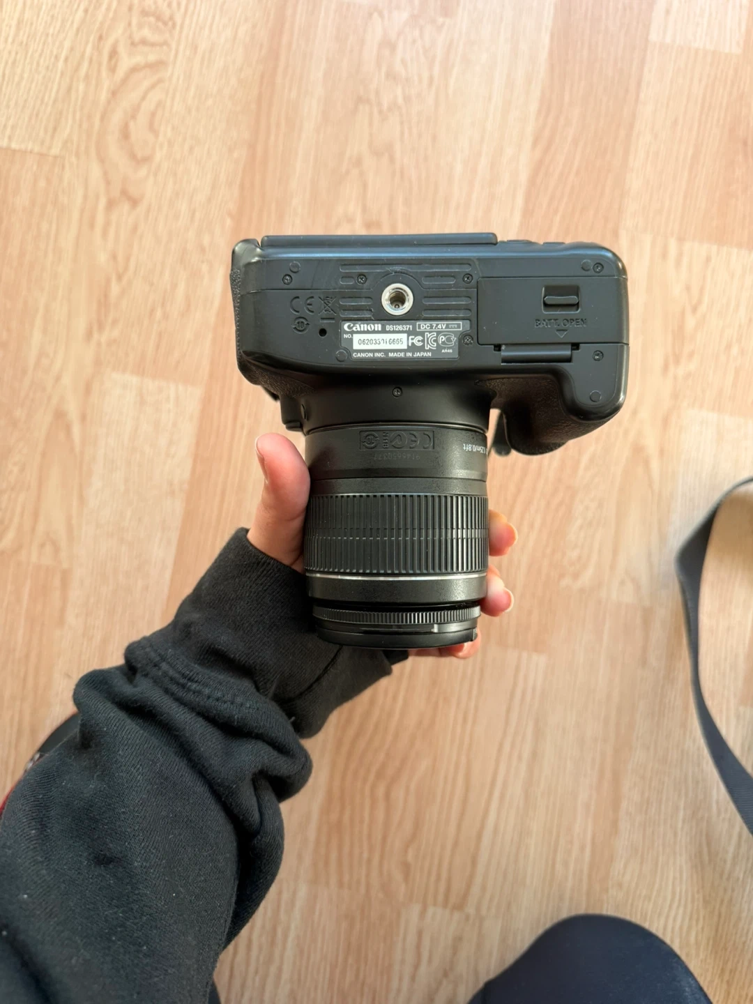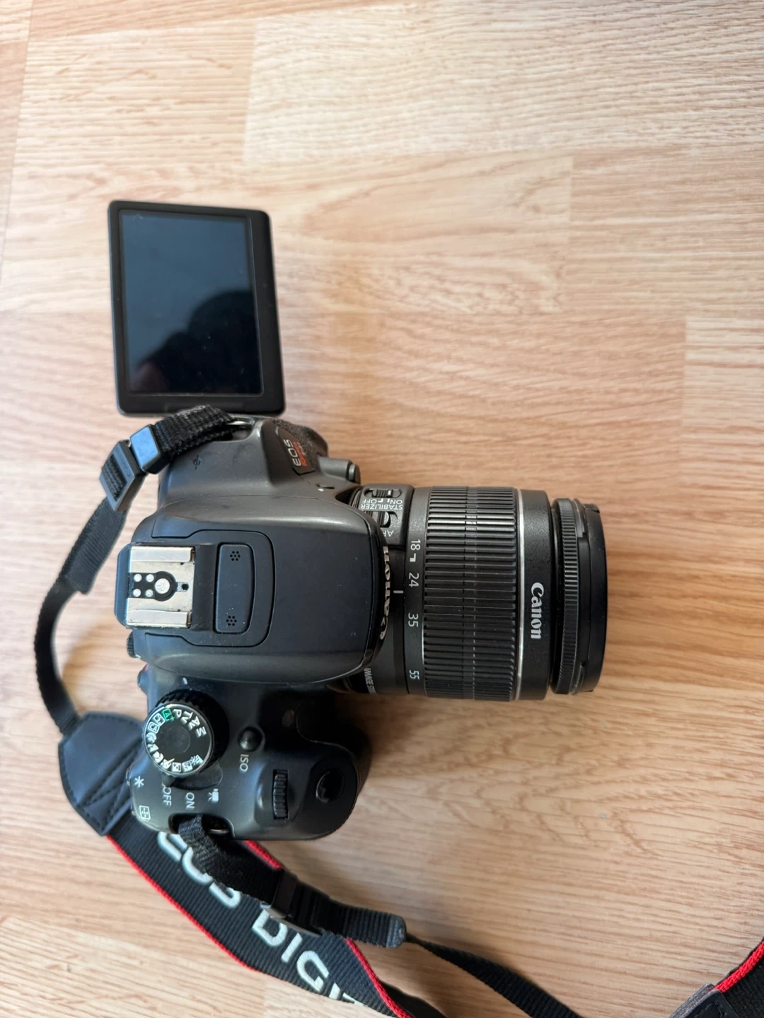 This Canon EOS digital camera comes with a Canon EF-S 18-55mm lens. It's a great option for capturing photos and videos! The camera has a movable LCD screen for versatile shooting angles.