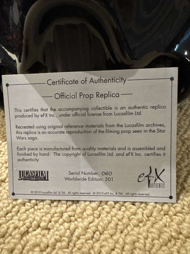 This is a 2014 Limited Edition EFX/Bait Collaboration Shadow Stormtrooper Helmet. It's been kept in a display case and is like new. I'm sad to see it go, as this helmet doesn't come up for sale often. It's very rare! No box. You can pick it up at Markville Mall.